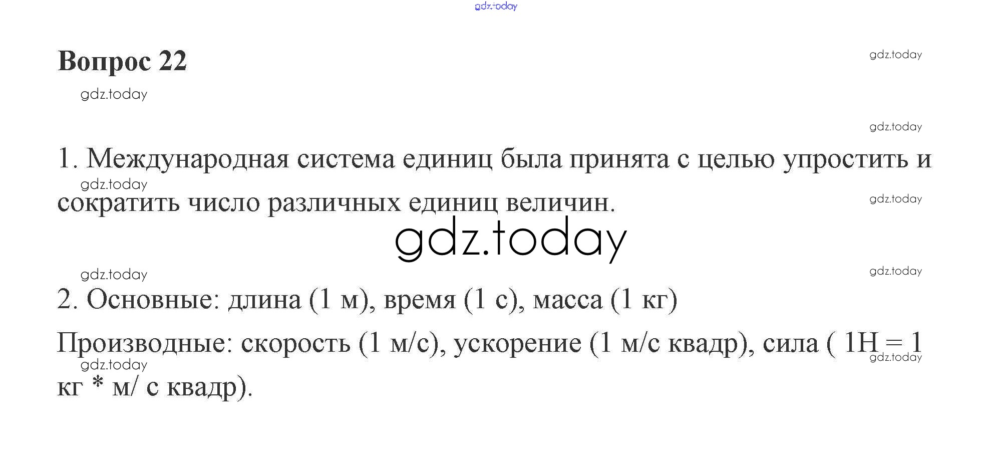 На страницах сайта gdz.today вы найдете учебный и вспомогательный материал, направленный на улучшения знаний школьной программы. ГДЗ - онлайн мир знаний Решение к вопросам 22 Учебнику по Физике для 7 класса Пурышева, Важеевская Дрофа 2011
