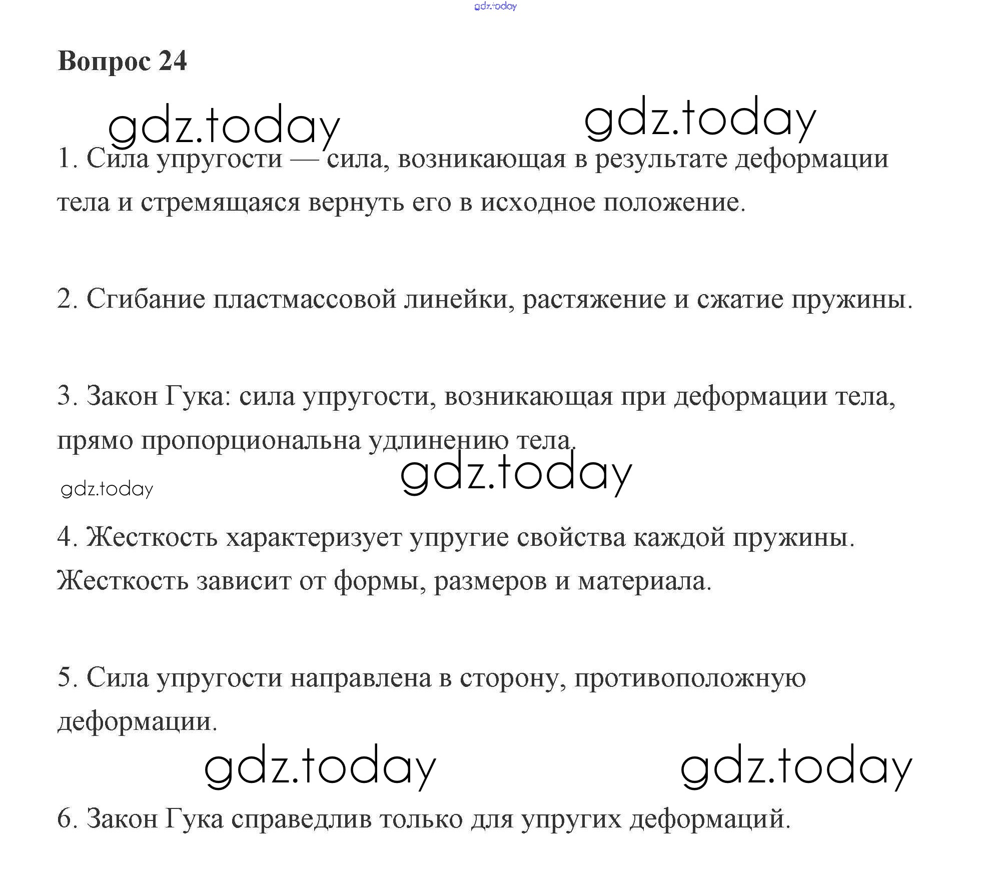 На страницах сайта gdz.today вы найдете учебный и вспомогательный материал, направленный на улучшения знаний школьной программы. ГДЗ - онлайн мир знаний Решение к вопросам 24 Учебнику по Физике для 7 класса Пурышева, Важеевская Дрофа 2011