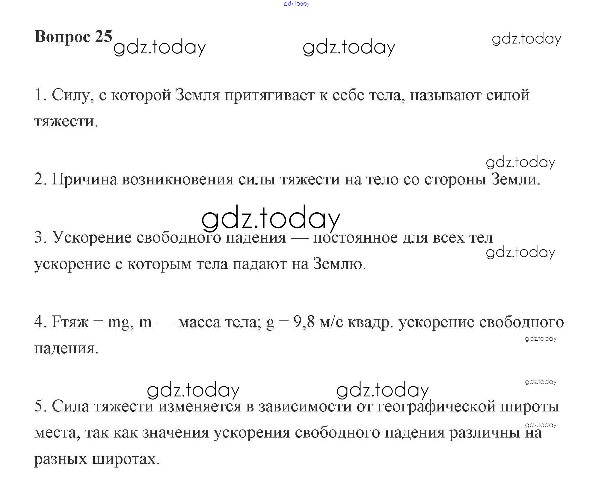 На страницах сайта gdz.today вы найдете учебный и вспомогательный материал, направленный на улучшения знаний школьной программы. ГДЗ - онлайн мир знаний Решение к вопросам 25 Учебнику по Физике для 7 класса Пурышева, Важеевская Дрофа 2011