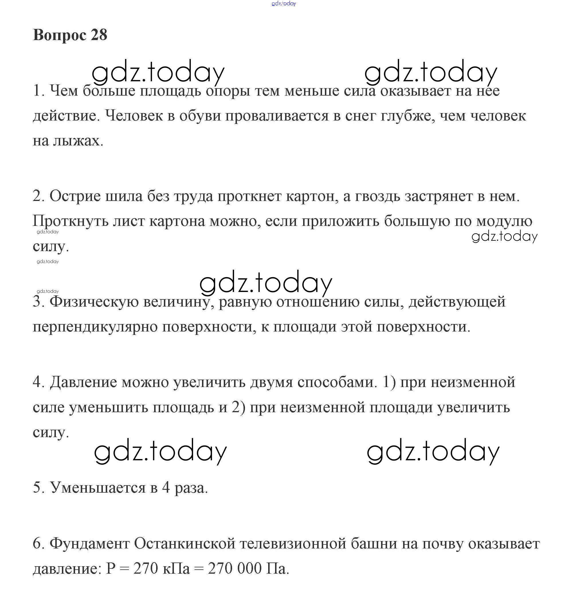 На страницах сайта gdz.today вы найдете учебный и вспомогательный материал, направленный на улучшения знаний школьной программы. ГДЗ - онлайн мир знаний Решение к вопросам 28 Учебнику по Физике для 7 класса Пурышева, Важеевская Дрофа 2011