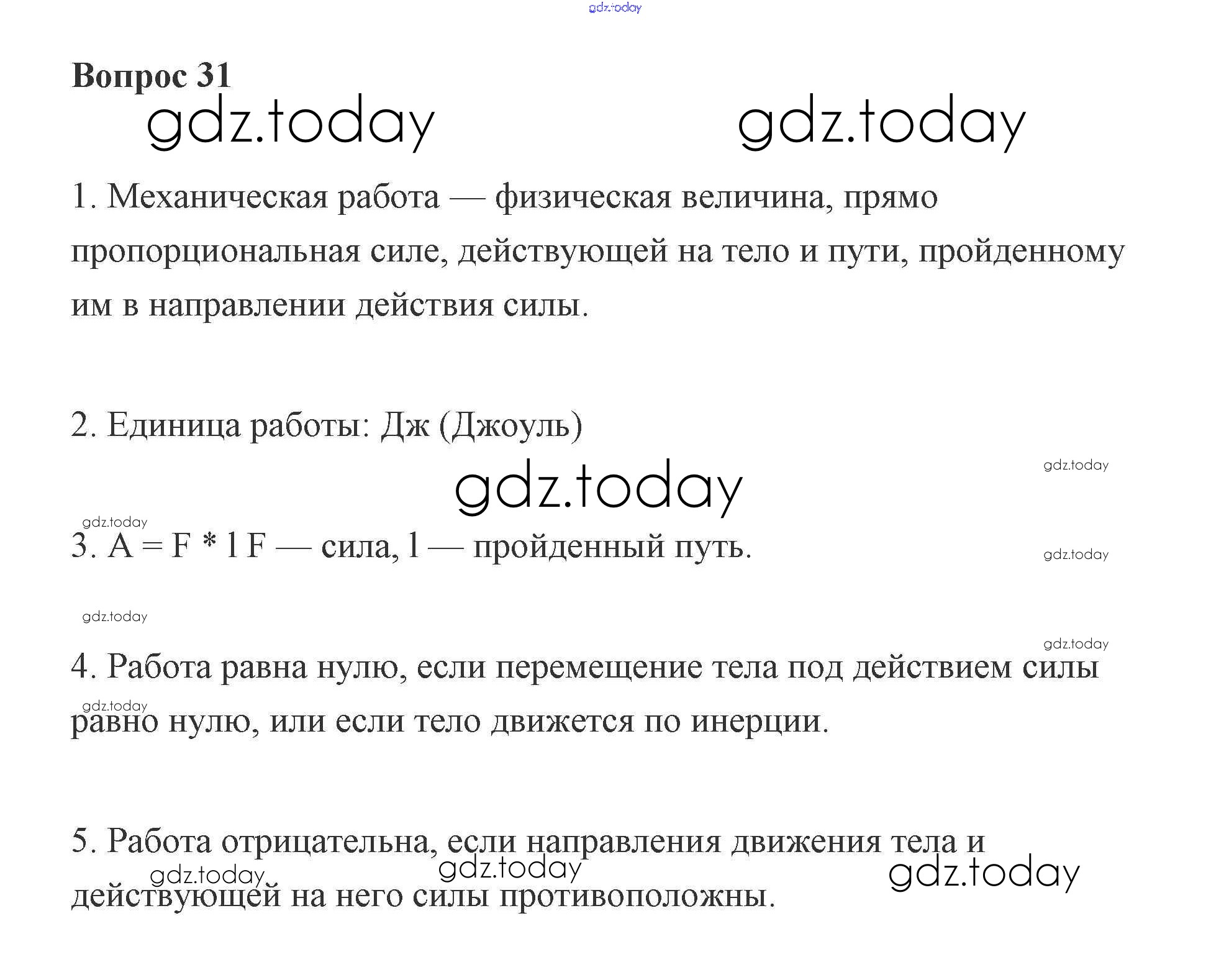 На страницах сайта gdz.today вы найдете учебный и вспомогательный материал, направленный на улучшения знаний школьной программы. ГДЗ - онлайн мир знаний Решение к вопросам 31 Учебнику по Физике для 7 класса Пурышева, Важеевская Дрофа 2011