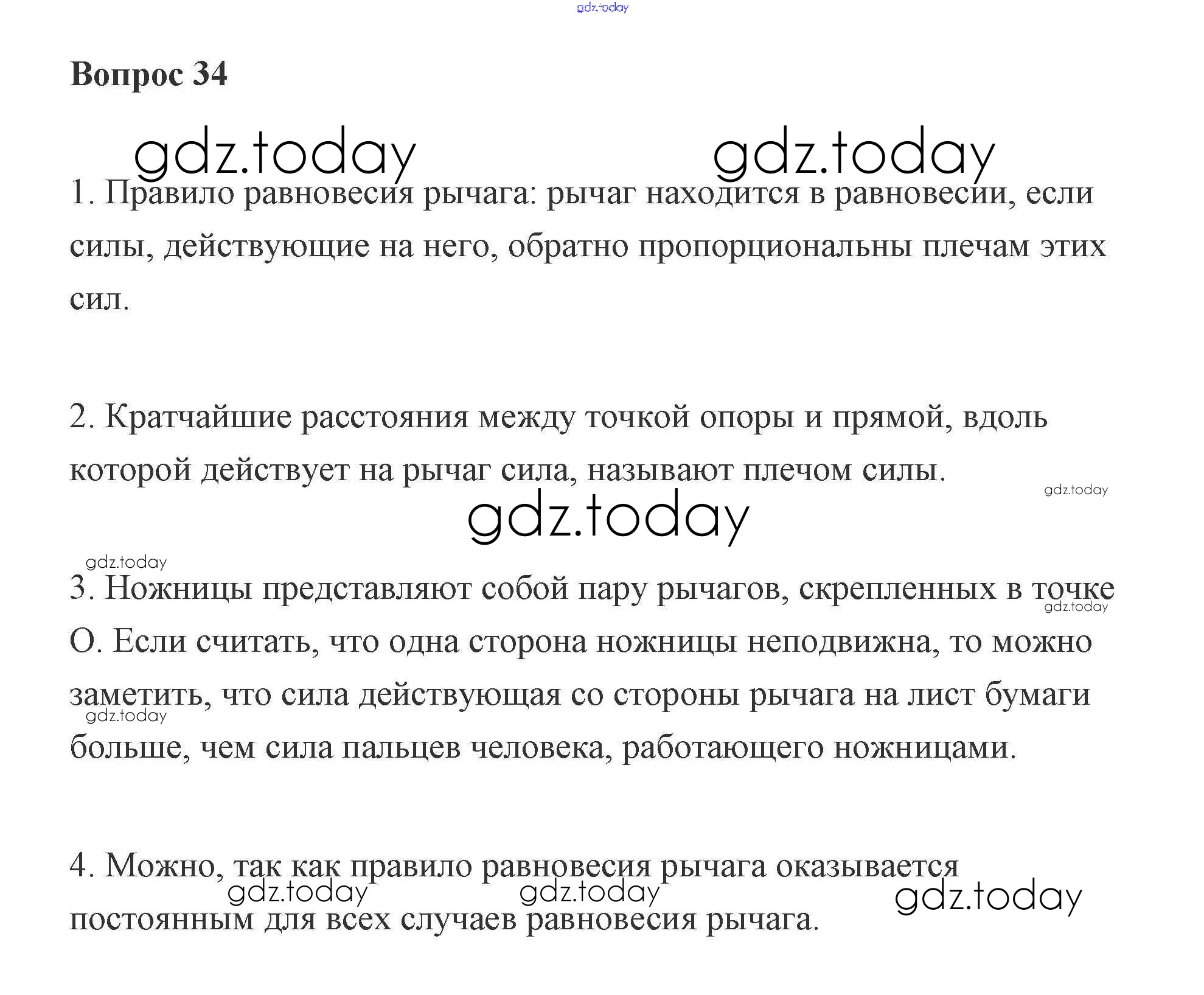 На страницах сайта gdz.today вы найдете учебный и вспомогательный материал, направленный на улучшения знаний школьной программы. ГДЗ - онлайн мир знаний Решение к вопросам 34 Учебнику по Физике для 7 класса Пурышева, Важеевская Дрофа 2011