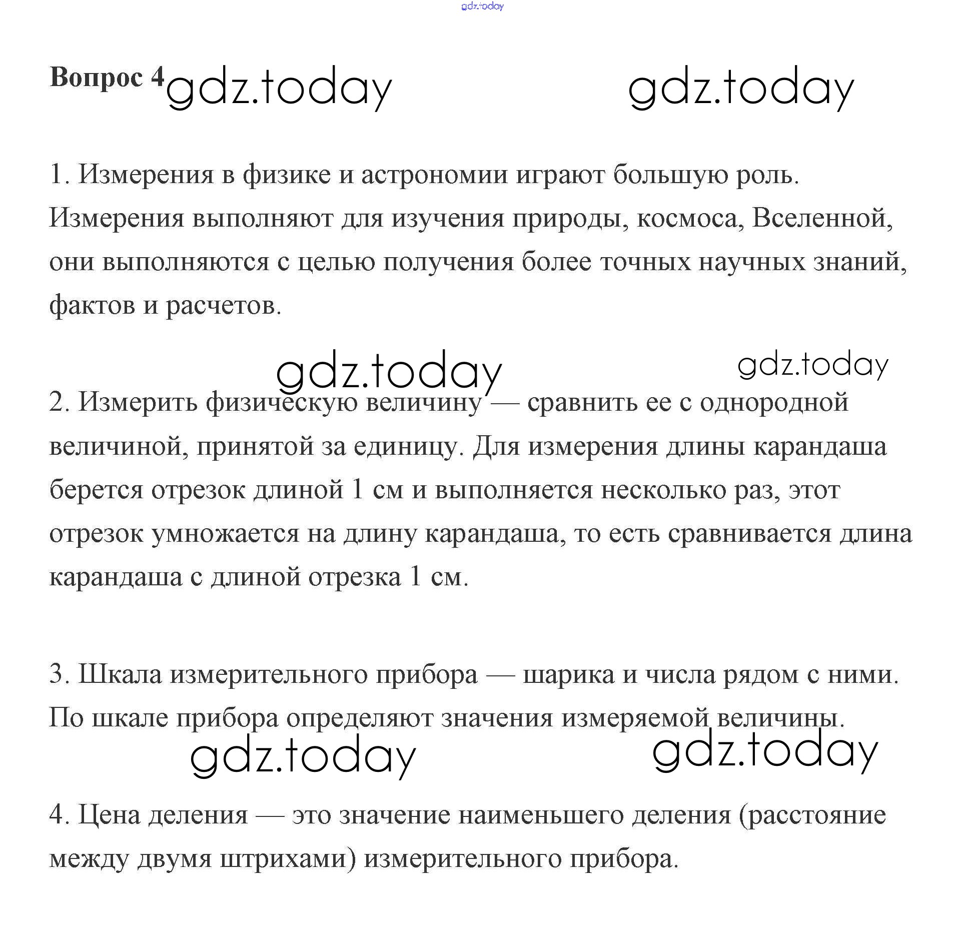 На страницах сайта gdz.today вы найдете учебный и вспомогательный материал, направленный на улучшения знаний школьной программы. ГДЗ - онлайн мир знаний Решение к вопросам 4 Учебнику по Физике для 7 класса Пурышева, Важеевская Дрофа 2011