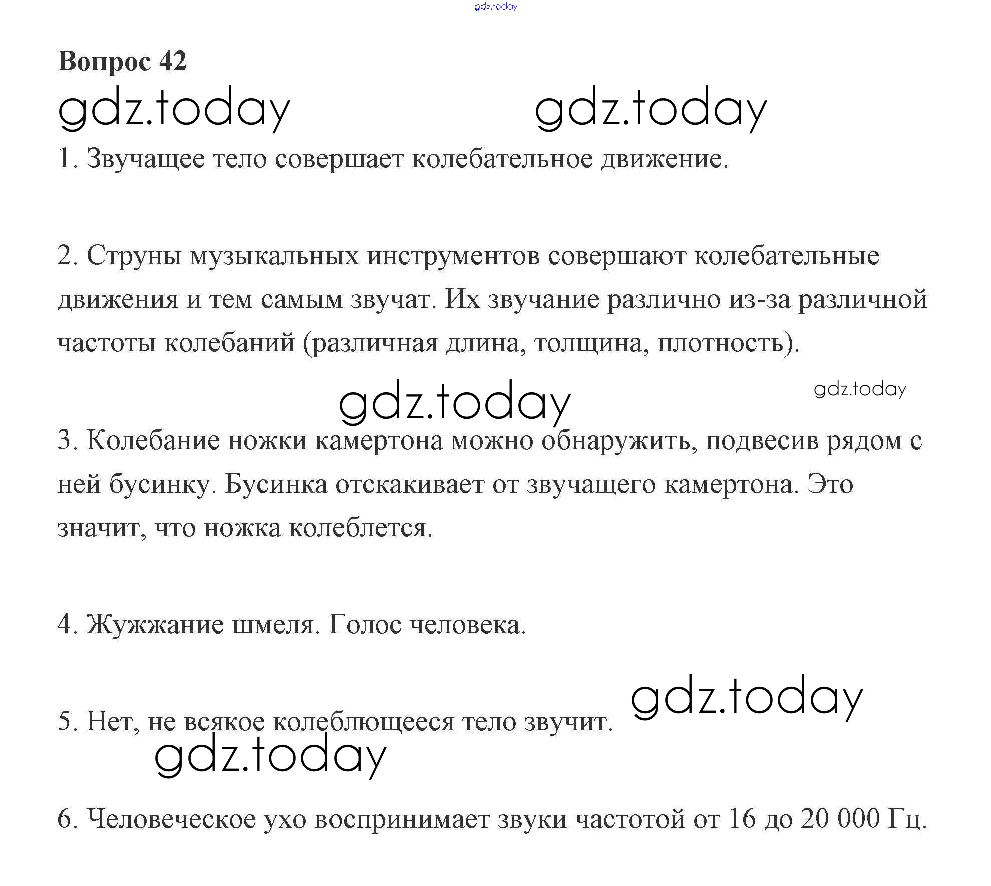 На страницах сайта gdz.today вы найдете учебный и вспомогательный материал, направленный на улучшения знаний школьной программы. ГДЗ - онлайн мир знаний Решение к вопросам 42 Учебнику по Физике для 7 класса Пурышева, Важеевская Дрофа 2011