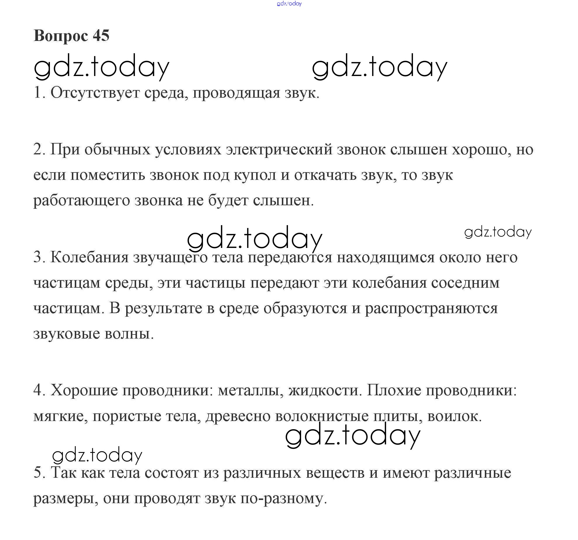 На страницах сайта gdz.today вы найдете учебный и вспомогательный материал, направленный на улучшения знаний школьной программы. ГДЗ - онлайн мир знаний Решение к вопросам 45 Учебнику по Физике для 7 класса Пурышева, Важеевская Дрофа 2011