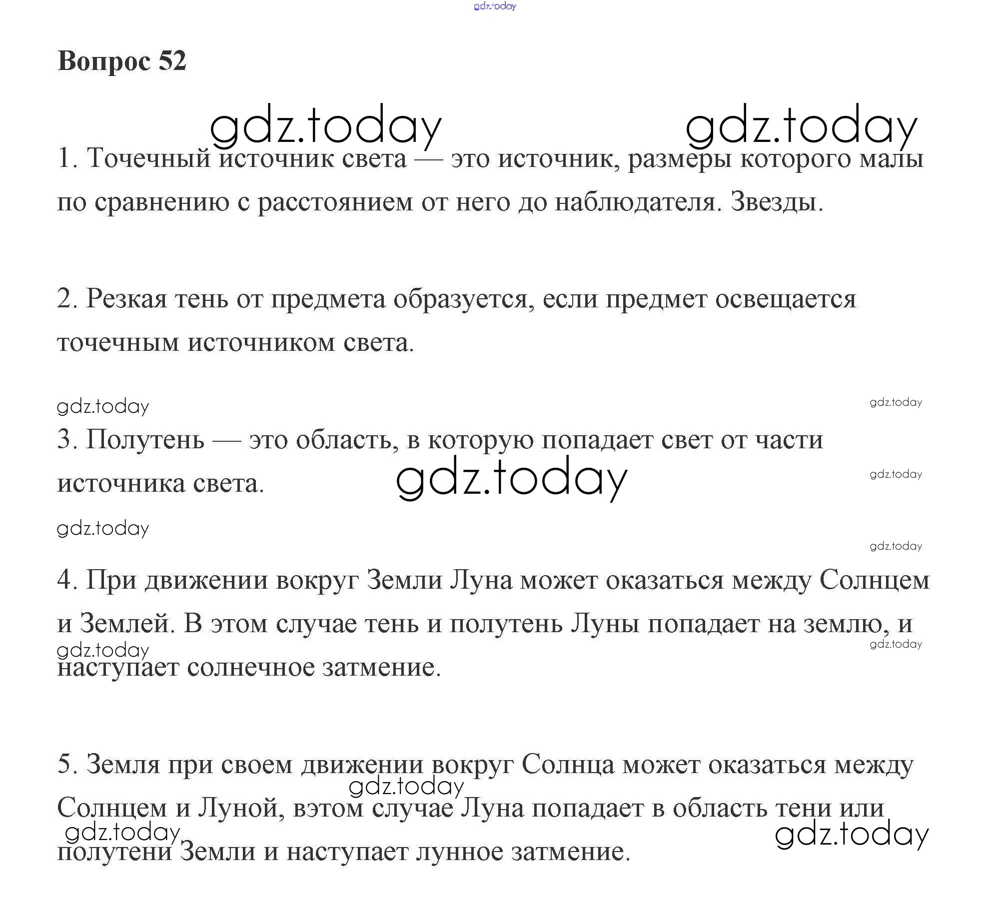 На страницах сайта gdz.today вы найдете учебный и вспомогательный материал, направленный на улучшения знаний школьной программы. ГДЗ - онлайн мир знаний Решение к вопросам 52 Учебнику по Физике для 7 класса Пурышева, Важеевская Дрофа 2011