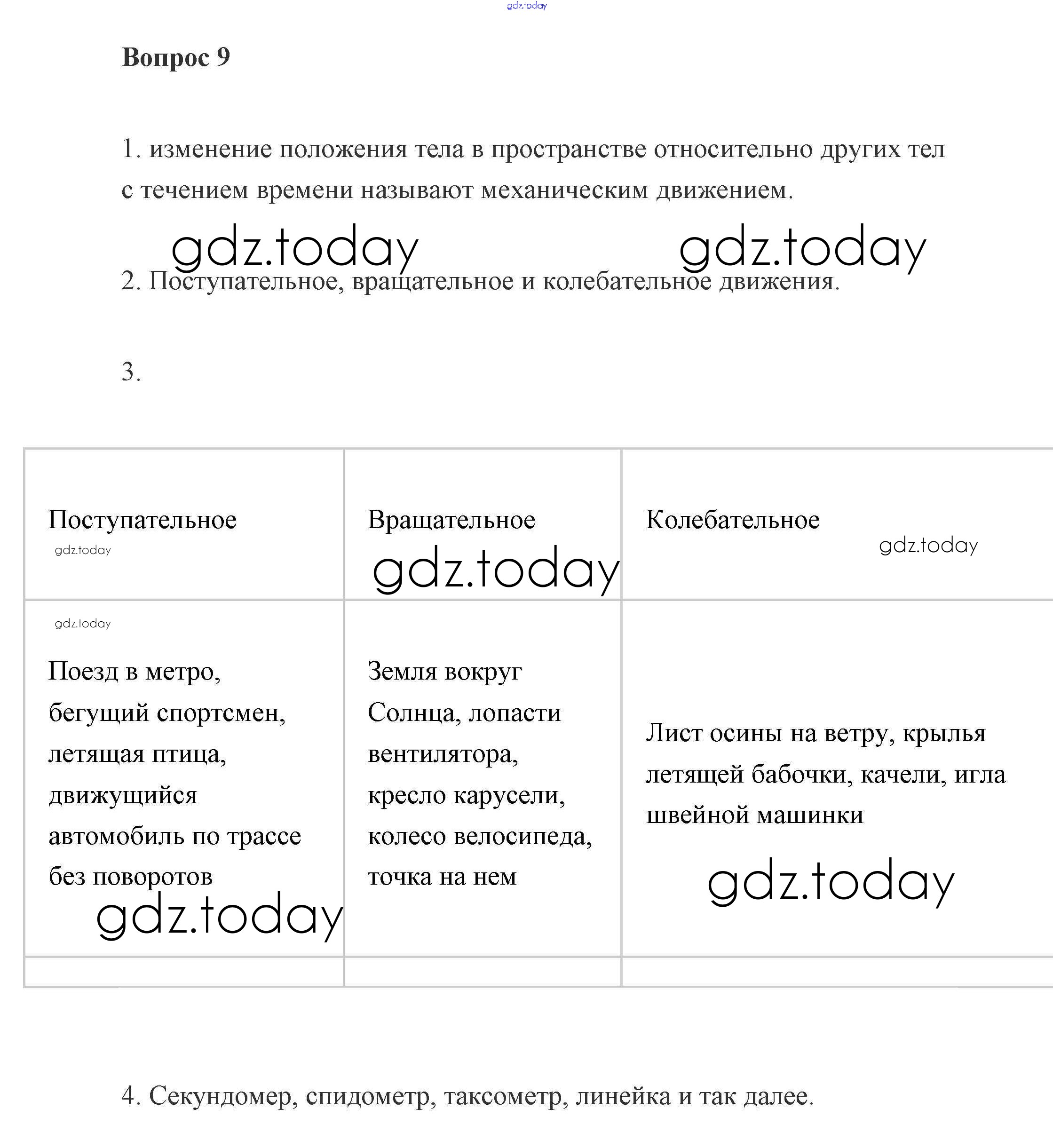 На страницах сайта gdz.today вы найдете учебный и вспомогательный материал, направленный на улучшения знаний школьной программы. ГДЗ - онлайн мир знаний Решение к вопросам 9 Учебнику по Физике для 7 класса Пурышева, Важеевская Дрофа 2011