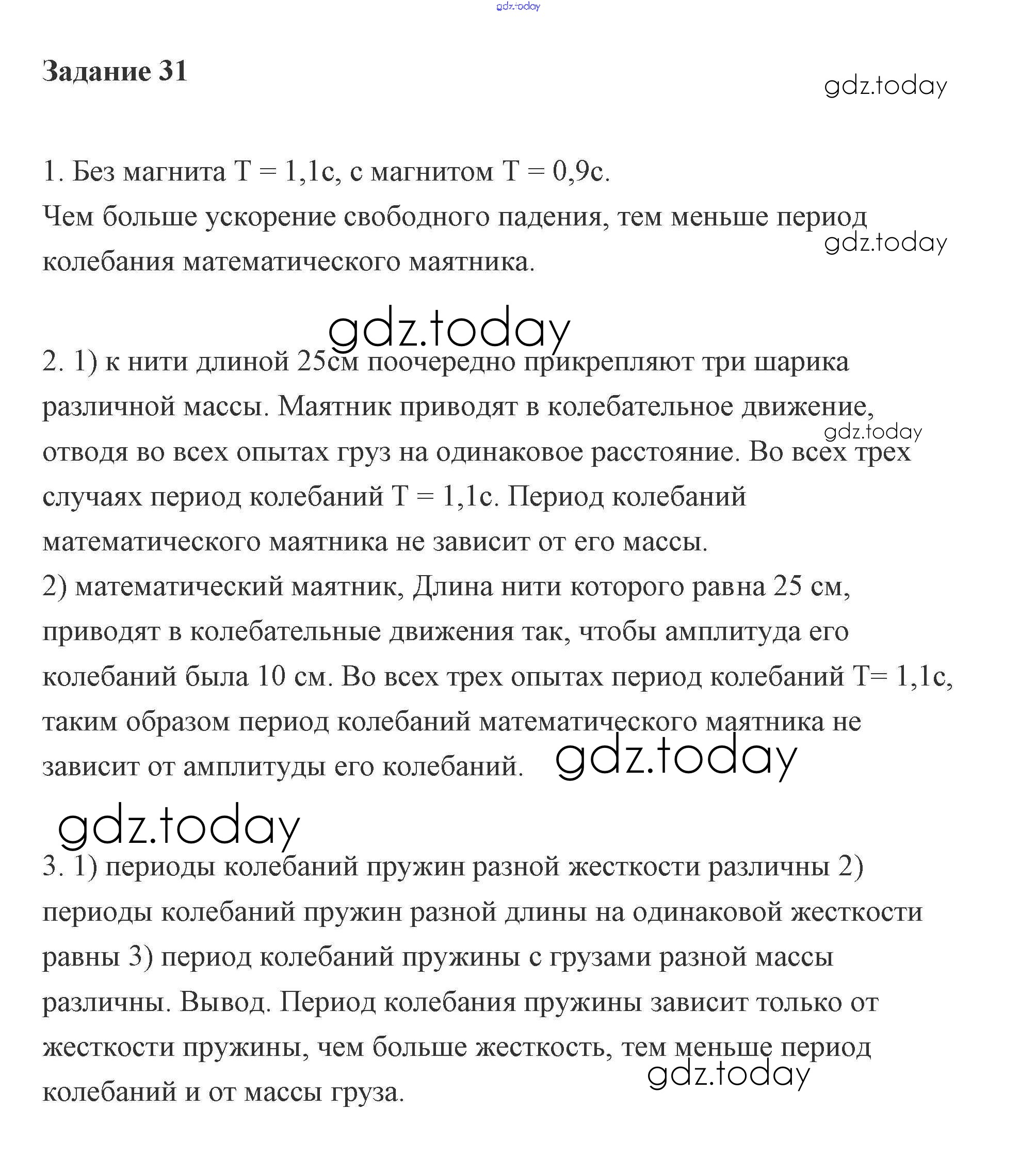 На страницах сайта gdz.today вы найдете учебный и вспомогательный материал, направленный на улучшения знаний школьной программы. ГДЗ - онлайн мир знаний Решение к заданиям 31 Учебнику по Физике для 7 класса Пурышева, Важеевская Дрофа 2011