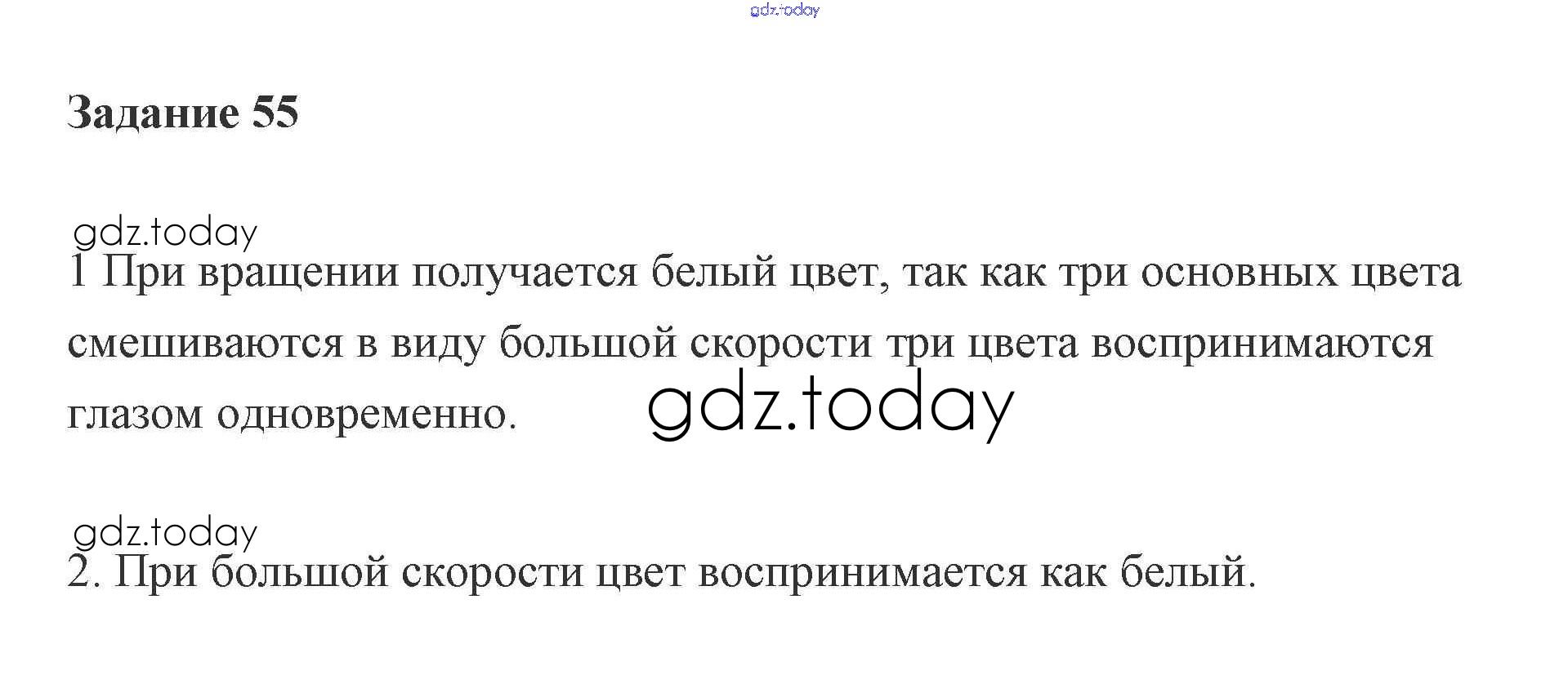 На страницах сайта gdz.today вы найдете учебный и вспомогательный материал, направленный на улучшения знаний школьной программы. ГДЗ - онлайн мир знаний Решение к заданиям 55 Учебнику по Физике для 7 класса Пурышева, Важеевская Дрофа 2011