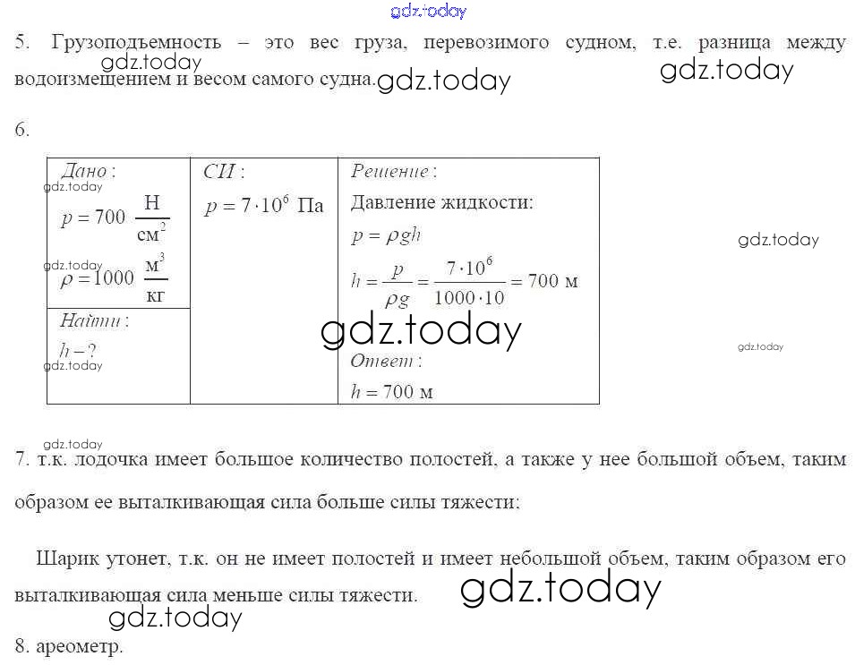 На страницах сайта gdz.today вы найдете учебный и вспомогательный материал, направленный на улучшения знаний школьной программы. ГДЗ - онлайн мир знаний Решение к главе 3. "Давление твердых тел, жидкостей и газов" стр.114 Рабочей тетради по Физике для 7 класса Касьянов, Дмитриева Дрофа Вертикаль 2017