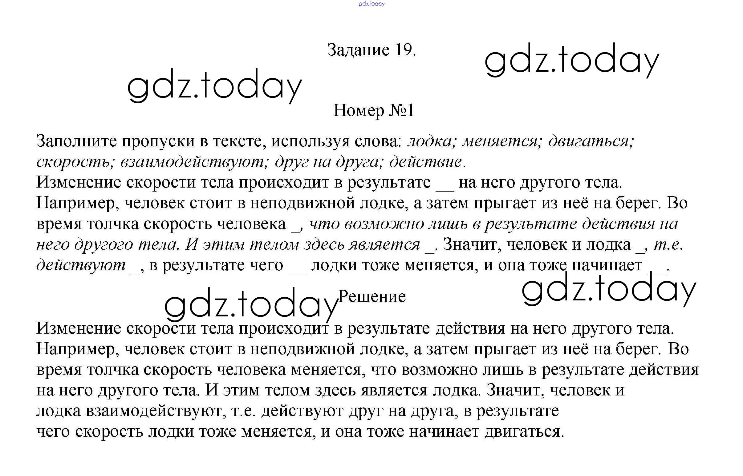 На страницах сайта gdz.today вы найдете учебный и вспомогательный материал, направленный на улучшения знаний школьной программы. ГДЗ - онлайн мир знаний Задание 19 (решение) 1 Рабочей тетради по Физике для 7 класса Ханнанова, Ханнанов Дрофа Вертикаль 2016