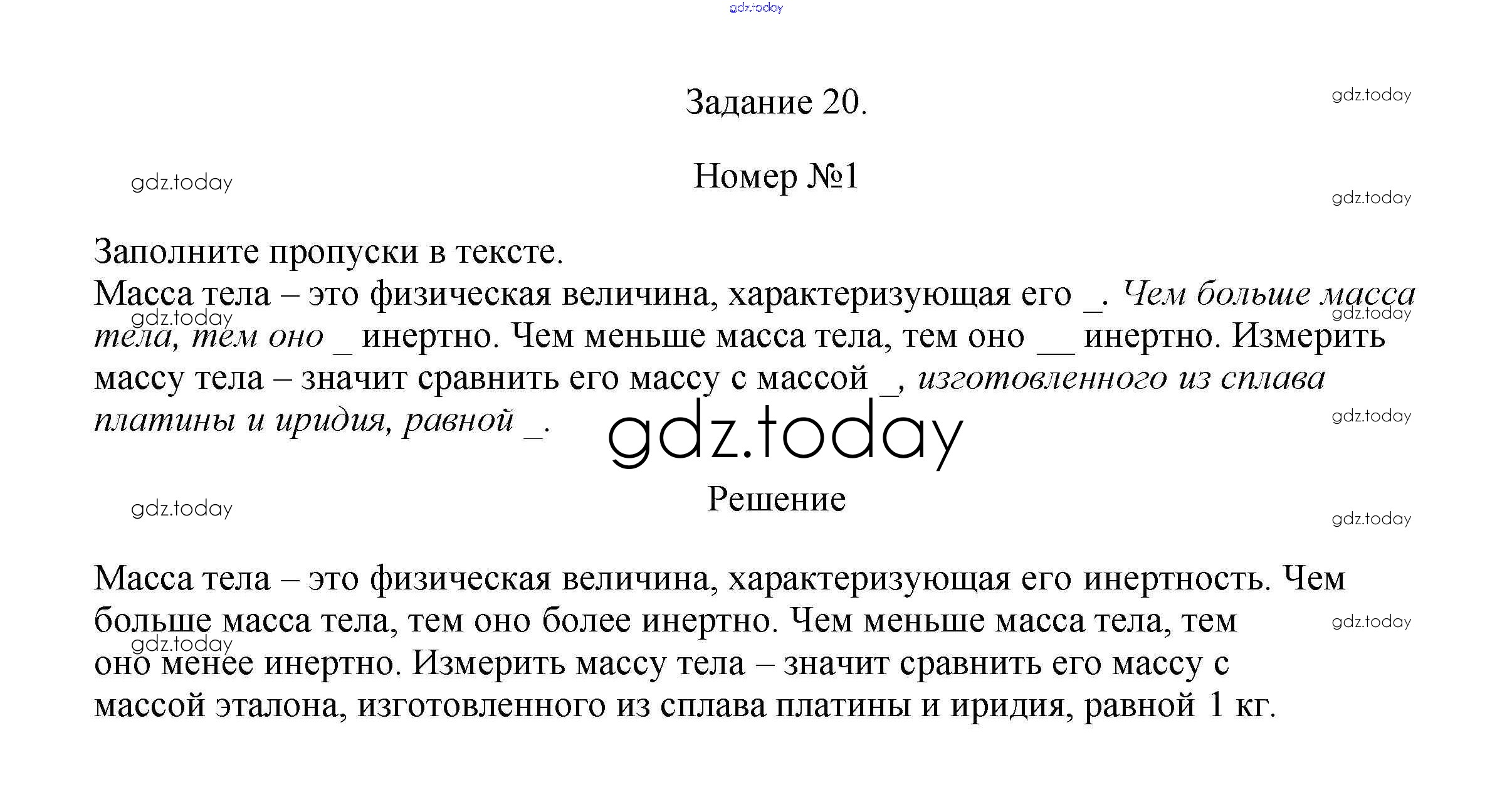 На страницах сайта gdz.today вы найдете учебный и вспомогательный материал, направленный на улучшения знаний школьной программы. ГДЗ - онлайн мир знаний Задание 20 (решение) 1 Рабочей тетради по Физике для 7 класса Ханнанова, Ханнанов Дрофа Вертикаль 2016