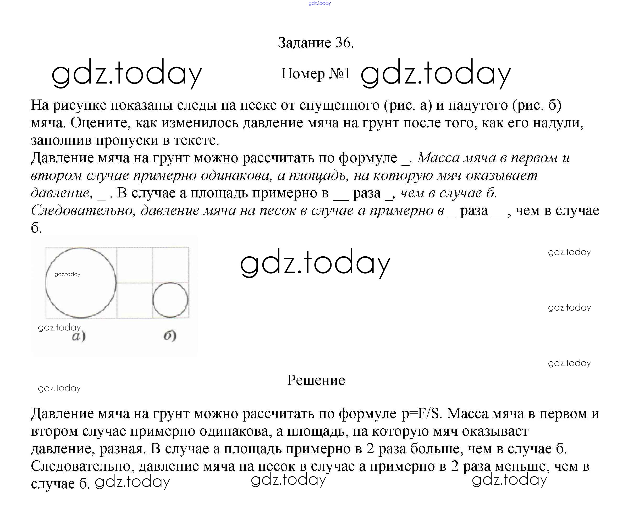 Ответы к Задание 36 (решение) 1 Рабочей тетради по Физике для 7 класса Ханнанова, Ханнанов Дрофа Вертикаль 2016