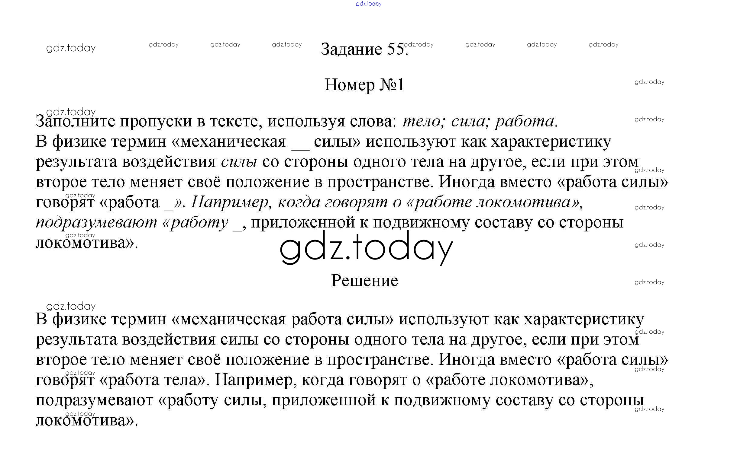 На страницах сайта gdz.today вы найдете учебный и вспомогательный материал, направленный на улучшения знаний школьной программы. ГДЗ - онлайн мир знаний Задание 55 (решение) 1 Рабочей тетради по Физике для 7 класса Ханнанова, Ханнанов Дрофа Вертикаль 2016