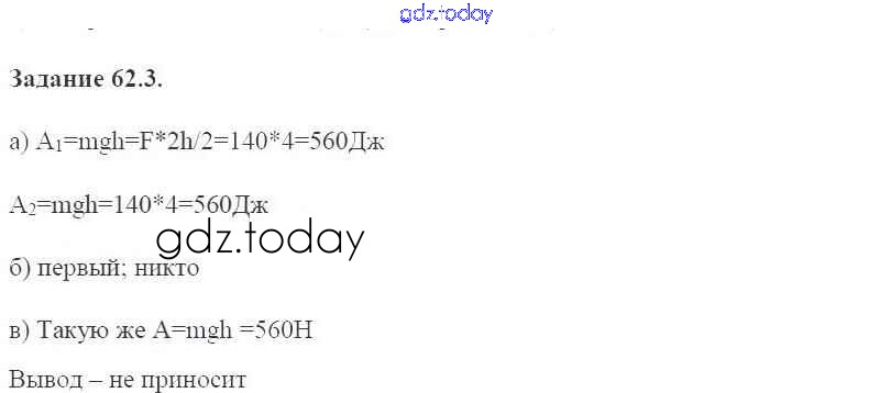 На страницах сайта gdz.today вы найдете учебный и вспомогательный материал, направленный на улучшения знаний школьной программы. ГДЗ - онлайн мир знаний Задание 62 (решение) 3 Рабочей тетради по Физике для 7 класса Ханнанова, Ханнанов Дрофа Вертикаль 2016