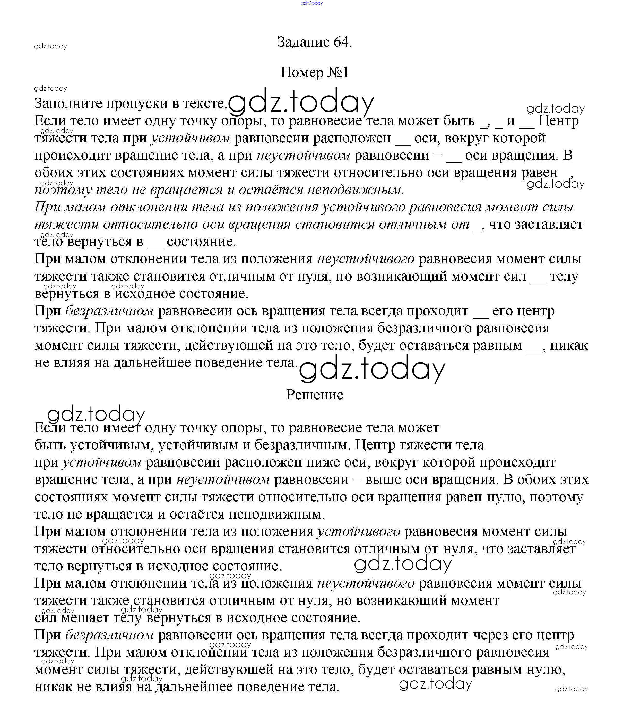 На страницах сайта gdz.today вы найдете учебный и вспомогательный материал, направленный на улучшения знаний школьной программы. ГДЗ - онлайн мир знаний Задание 64 (решение) 1 Рабочей тетради по Физике для 7 класса Ханнанова, Ханнанов Дрофа Вертикаль 2016