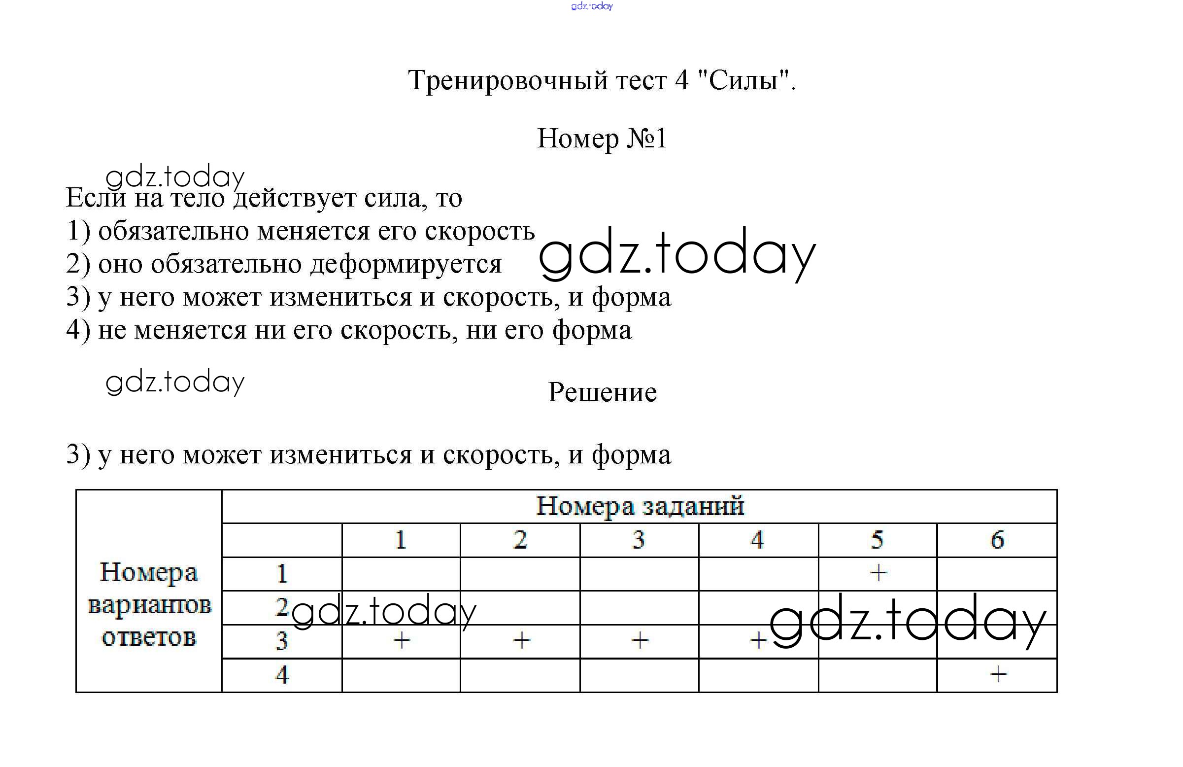 На страницах сайта gdz.today вы найдете учебный и вспомогательный материал, направленный на улучшения знаний школьной программы. ГДЗ - онлайн мир знаний Тренировочный тест 4 "Силы" Тесты (решение) 1 Рабочей тетради по Физике для 7 класса Ханнанова, Ханнанов Дрофа Вертикаль 2016