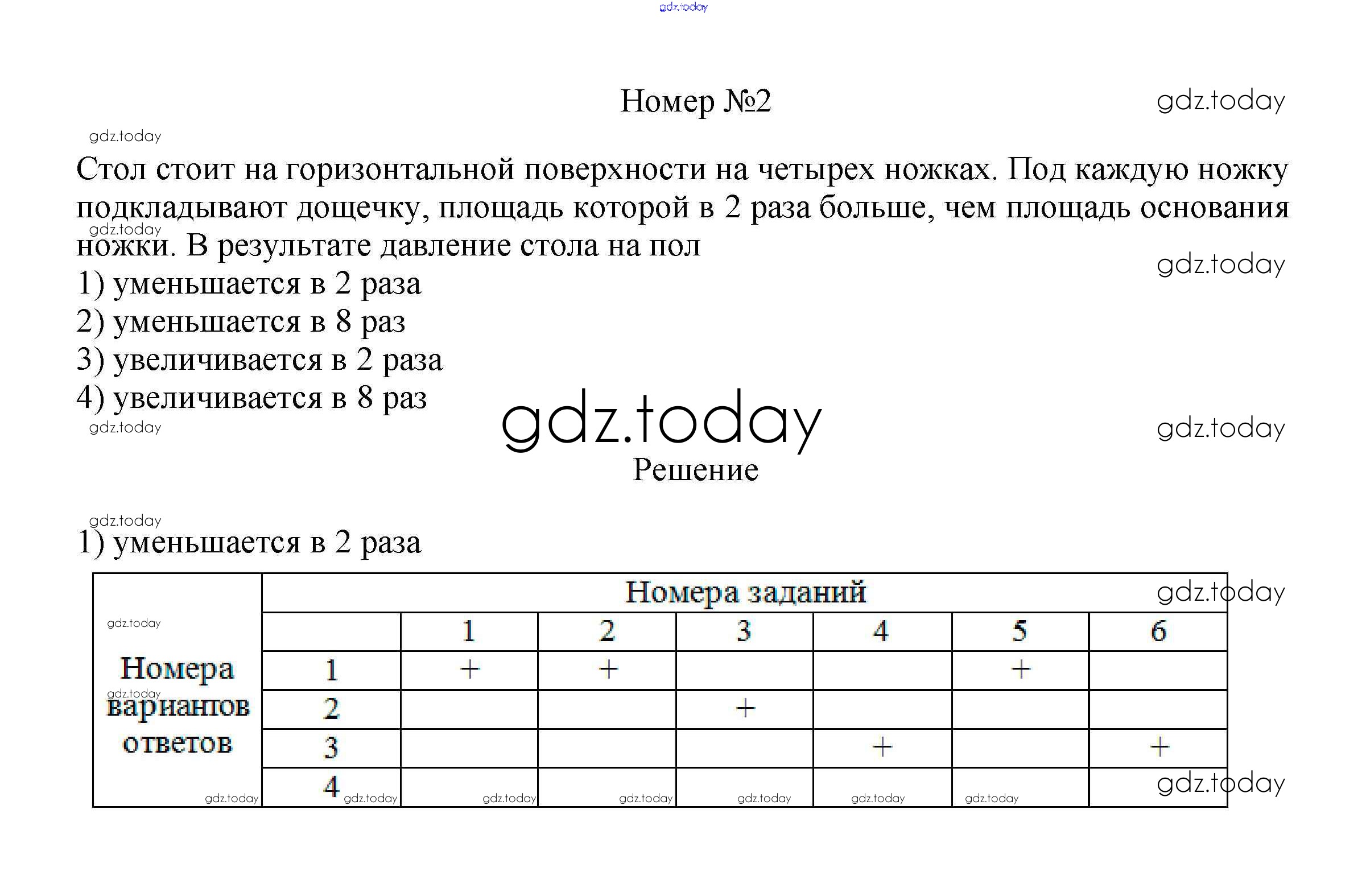 На страницах сайта gdz.today вы найдете учебный и вспомогательный материал, направленный на улучшения знаний школьной программы. ГДЗ - онлайн мир знаний Тренировочный тест 5 "Давление твердого тела" Тесты (решение) 2 Рабочей тетради по Физике для 7 класса Ханнанова, Ханнанов Дрофа Вертикаль 2016