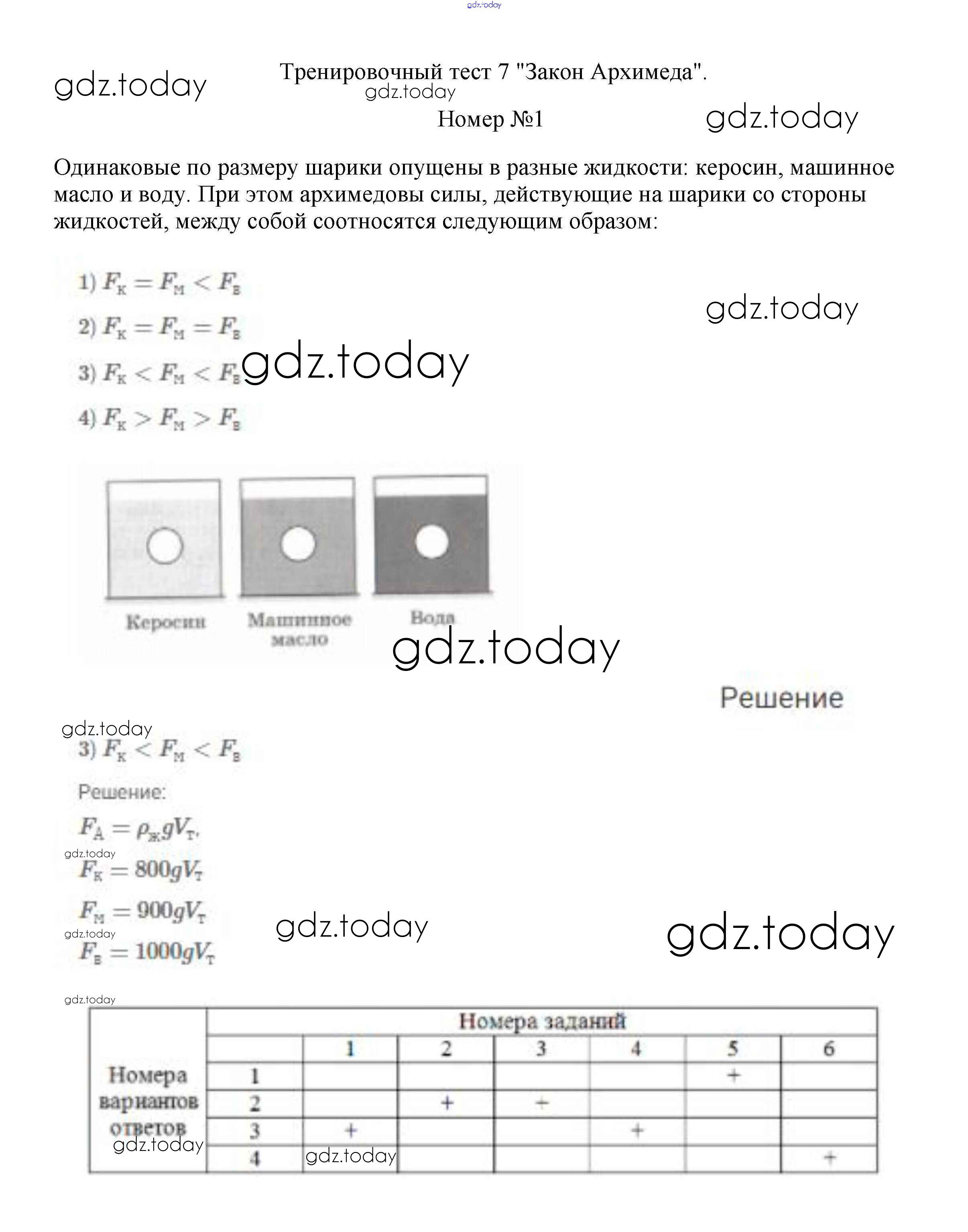 На страницах сайта gdz.today вы найдете учебный и вспомогательный материал, направленный на улучшения знаний школьной программы. ГДЗ - онлайн мир знаний Тренировочный тест 7 "Закон Архимеда" Тесты (решение) 1 Рабочей тетради по Физике для 7 класса Ханнанова, Ханнанов Дрофа Вертикаль 2016