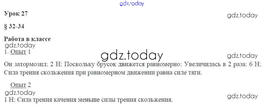 На страницах сайта gdz.today вы найдете учебный и вспомогательный материал, направленный на улучшения знаний школьной программы. ГДЗ - онлайн мир знаний Решение к урокам 27 Рабочей тетради по Физике для 7 класса Минькова, Иванова Экзамен УМК 2018