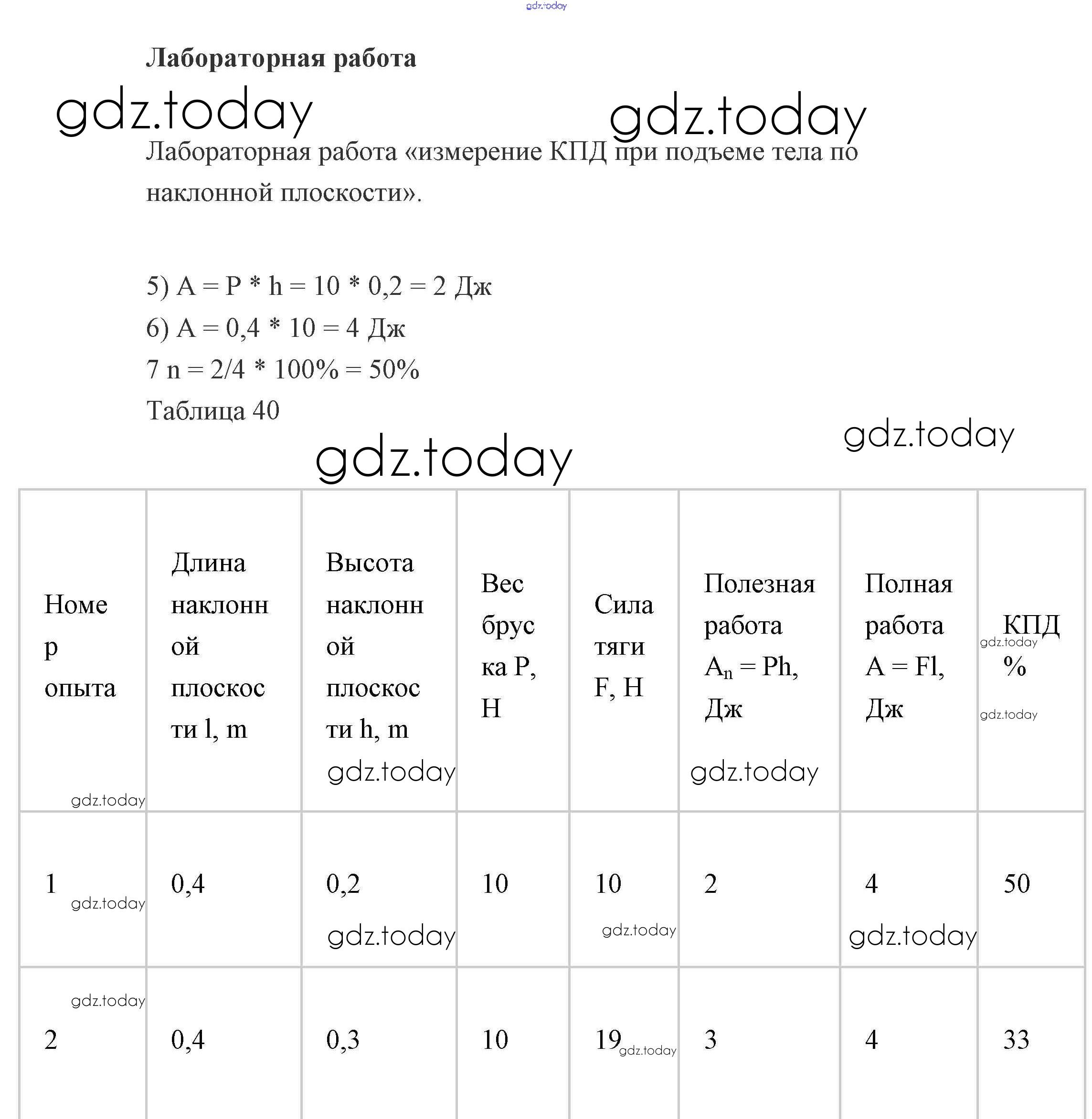 На страницах сайта gdz.today вы найдете учебный и вспомогательный материал, направленный на улучшения знаний школьной программы. ГДЗ - онлайн мир знаний Лабораторная работа измерение КПД Решение к разделу "Механические явления" 10 Рабочей тетради по Физике для 7 класса Пурышева, Важеевская Дрофа 2018