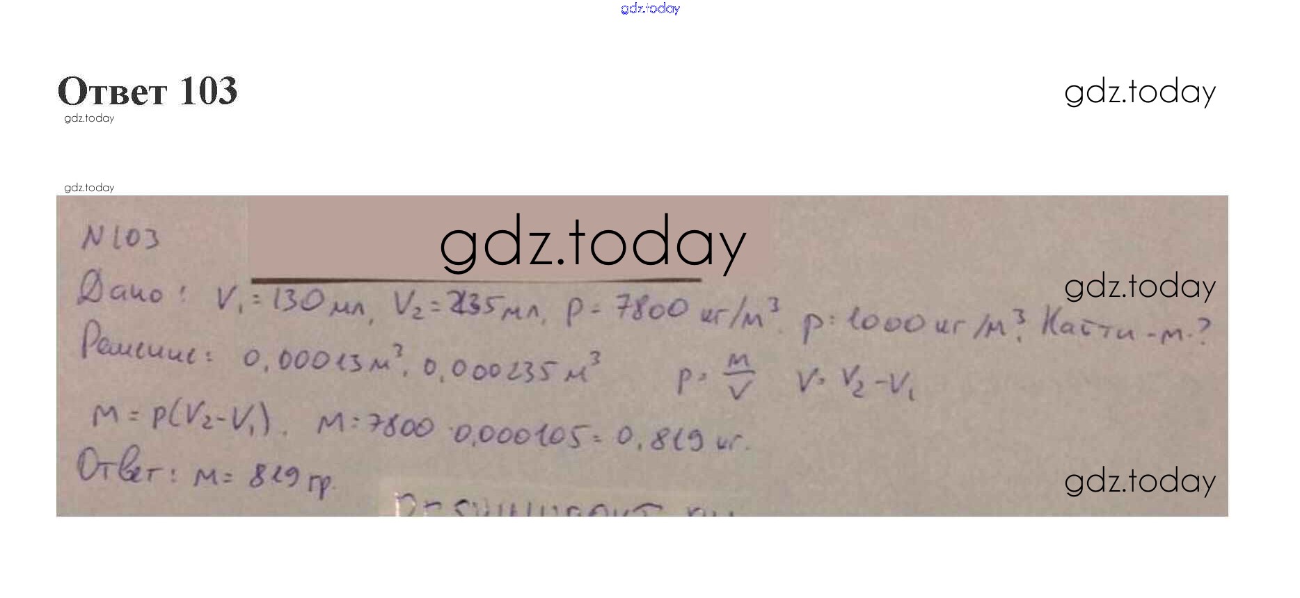 Ответы к Плотность Решение к разделу "Механические явления" 103 Рабочей тетради по Физике для 7 класса Пурышева, Важеевская Дрофа 2018
