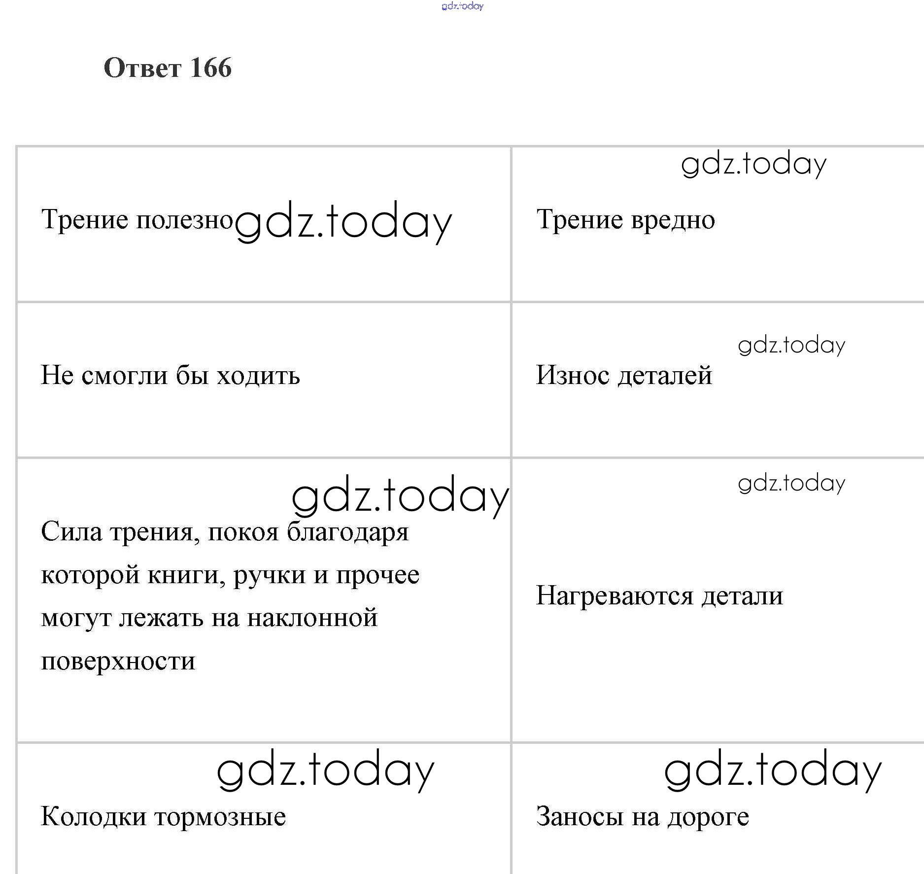 На страницах сайта gdz.today вы найдете учебный и вспомогательный материал, направленный на улучшения знаний школьной программы. ГДЗ - онлайн мир знаний Сила трения Решение к разделу "Механические явления" 166 Рабочей тетради по Физике для 7 класса Пурышева, Важеевская Дрофа 2018