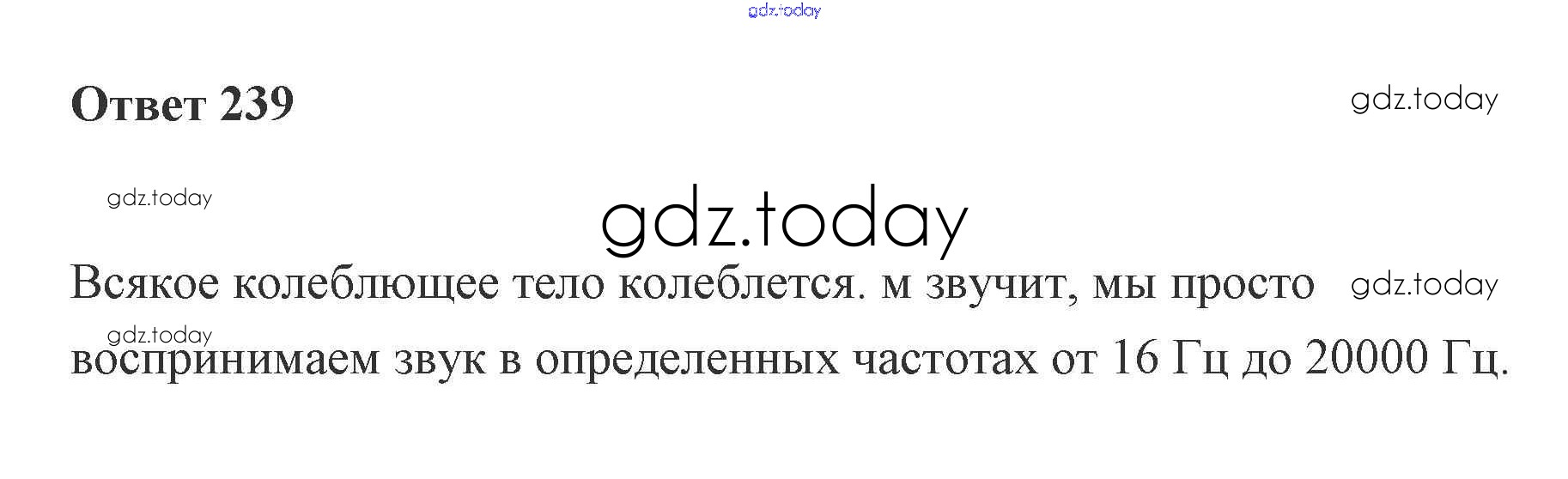 На страницах сайта gdz.today вы найдете учебный и вспомогательный материал, направленный на улучшения знаний школьной программы. ГДЗ - онлайн мир знаний Звук Звуковые явления 239 Рабочей тетради по Физике для 7 класса Пурышева, Важеевская Дрофа 2018