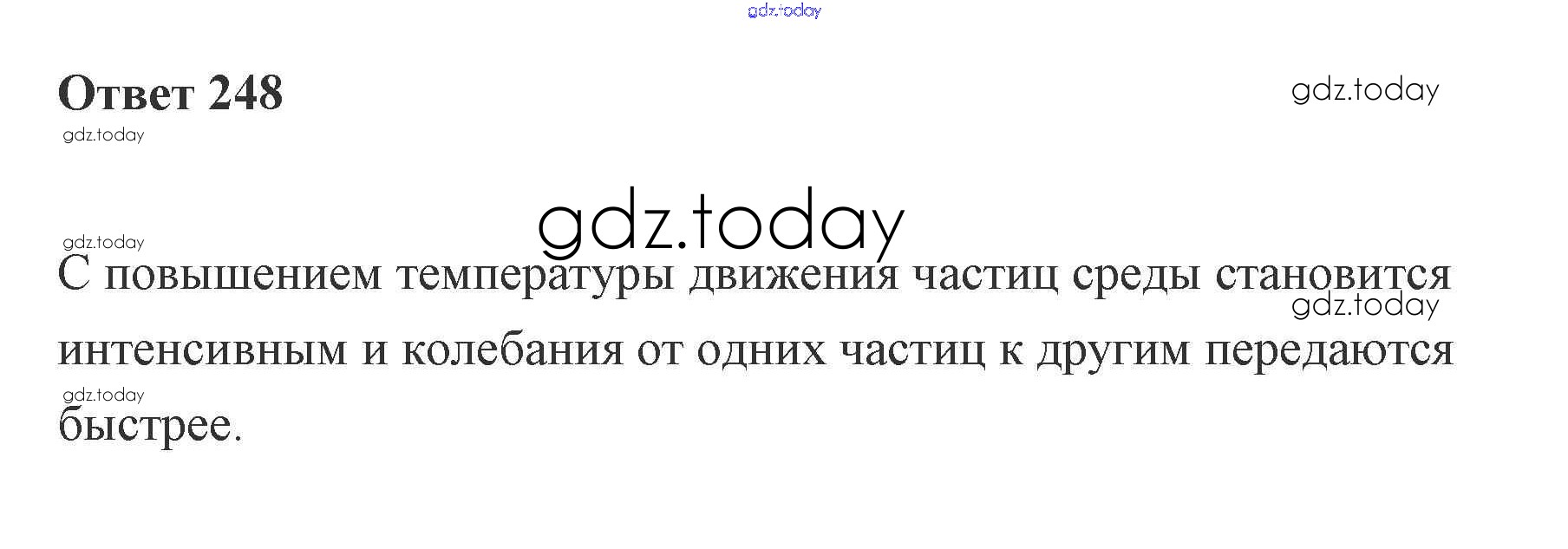 На страницах сайта gdz.today вы найдете учебный и вспомогательный материал, направленный на улучшения знаний школьной программы. ГДЗ - онлайн мир знаний Звуковые волны Звуковые явления 248 Рабочей тетради по Физике для 7 класса Пурышева, Важеевская Дрофа 2018