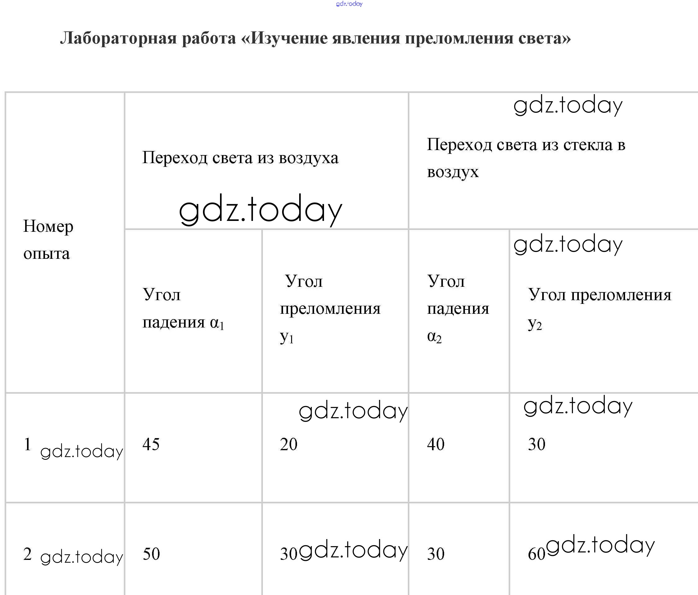 На страницах сайта gdz.today вы найдете учебный и вспомогательный материал, направленный на улучшения знаний школьной программы. ГДЗ - онлайн мир знаний Лабораторная работа изучение явления преломления Световые явления 14 Рабочей тетради по Физике для 7 класса Пурышева, Важеевская Дрофа 2018