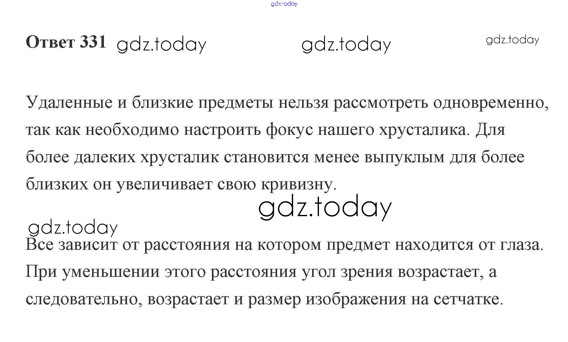 На страницах сайта gdz.today вы найдете учебный и вспомогательный материал, направленный на улучшения знаний школьной программы. ГДЗ - онлайн мир знаний Глаз как оптическая система Световые явления 331 Рабочей тетради по Физике для 7 класса Пурышева, Важеевская Дрофа 2018