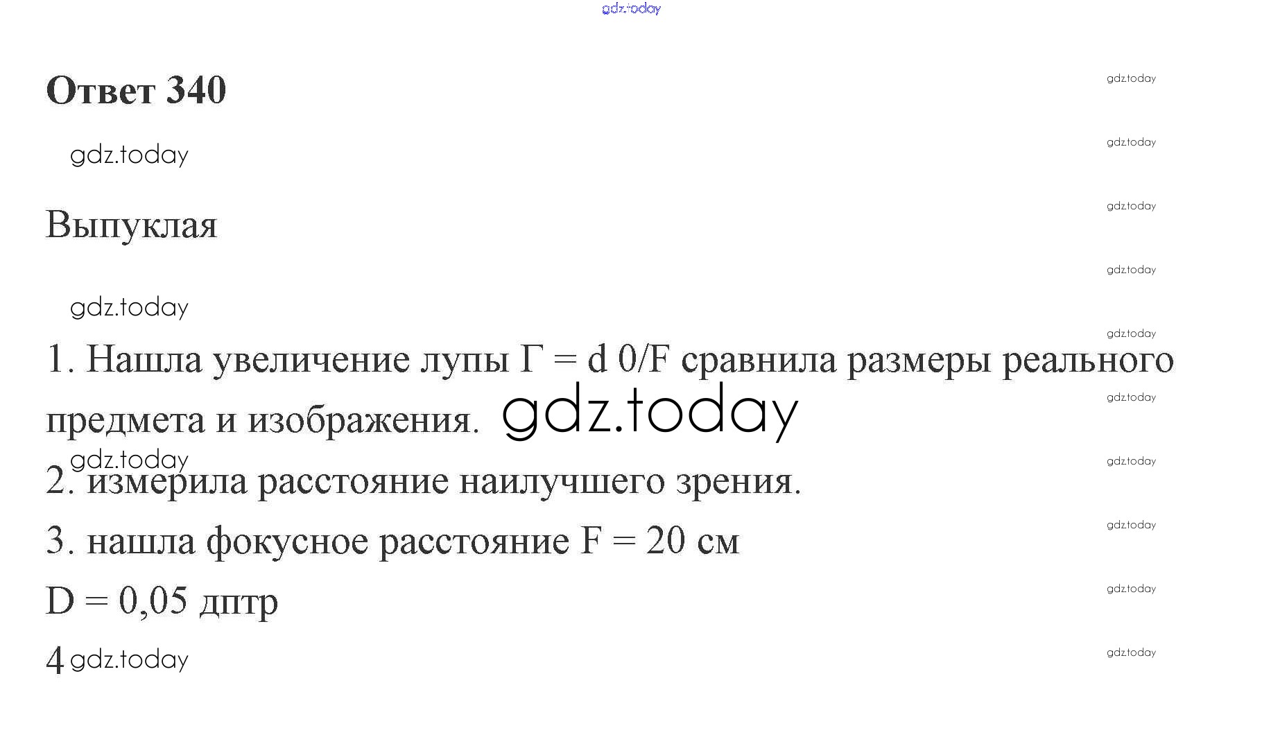 Ответы к Очки, лупа Световые явления 340 Рабочей тетради по Физике для 7 класса Пурышева, Важеевская Дрофа 2018
