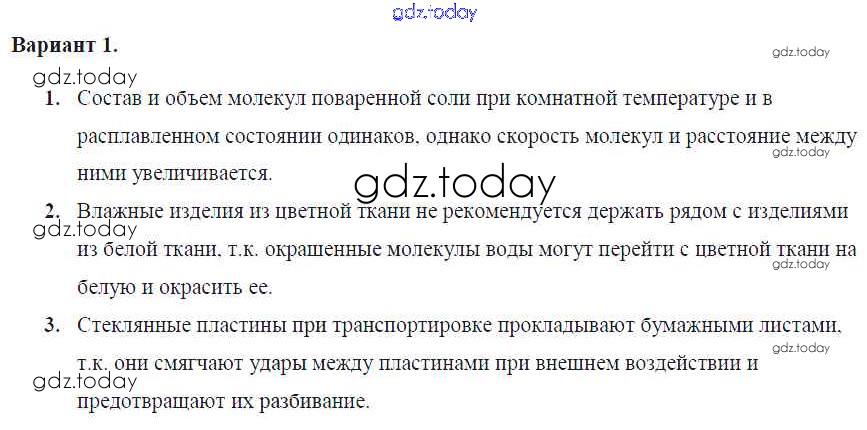 Ответы к КР №-1. Первоначальные сведения о строении вещества Решение к контрольным работам Вариант №1 Самостоятельным и контрольным работам по Физике для 7 класса Марон Дрофа Вертикаль 2016