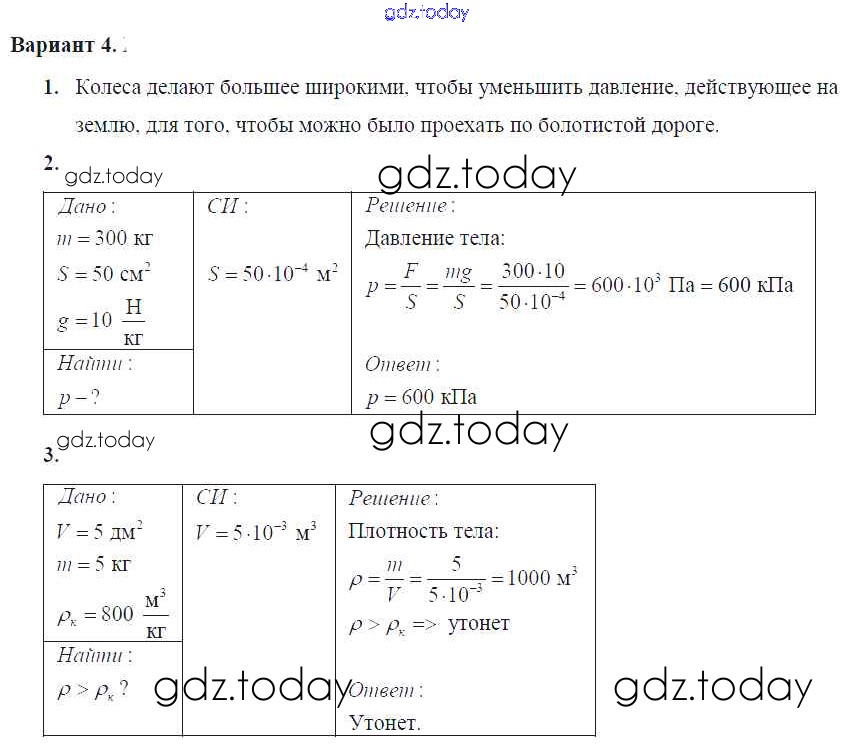 На страницах сайта gdz.today вы найдете учебный и вспомогательный материал, направленный на улучшения знаний школьной программы. ГДЗ - онлайн мир знаний КР №-3. Давление твердых тел, жидкостей и газов Решение к контрольным работам Вариант №4 Самостоятельным и контрольным работам по Физике для 7 класса Марон Дрофа Вертикаль 2016