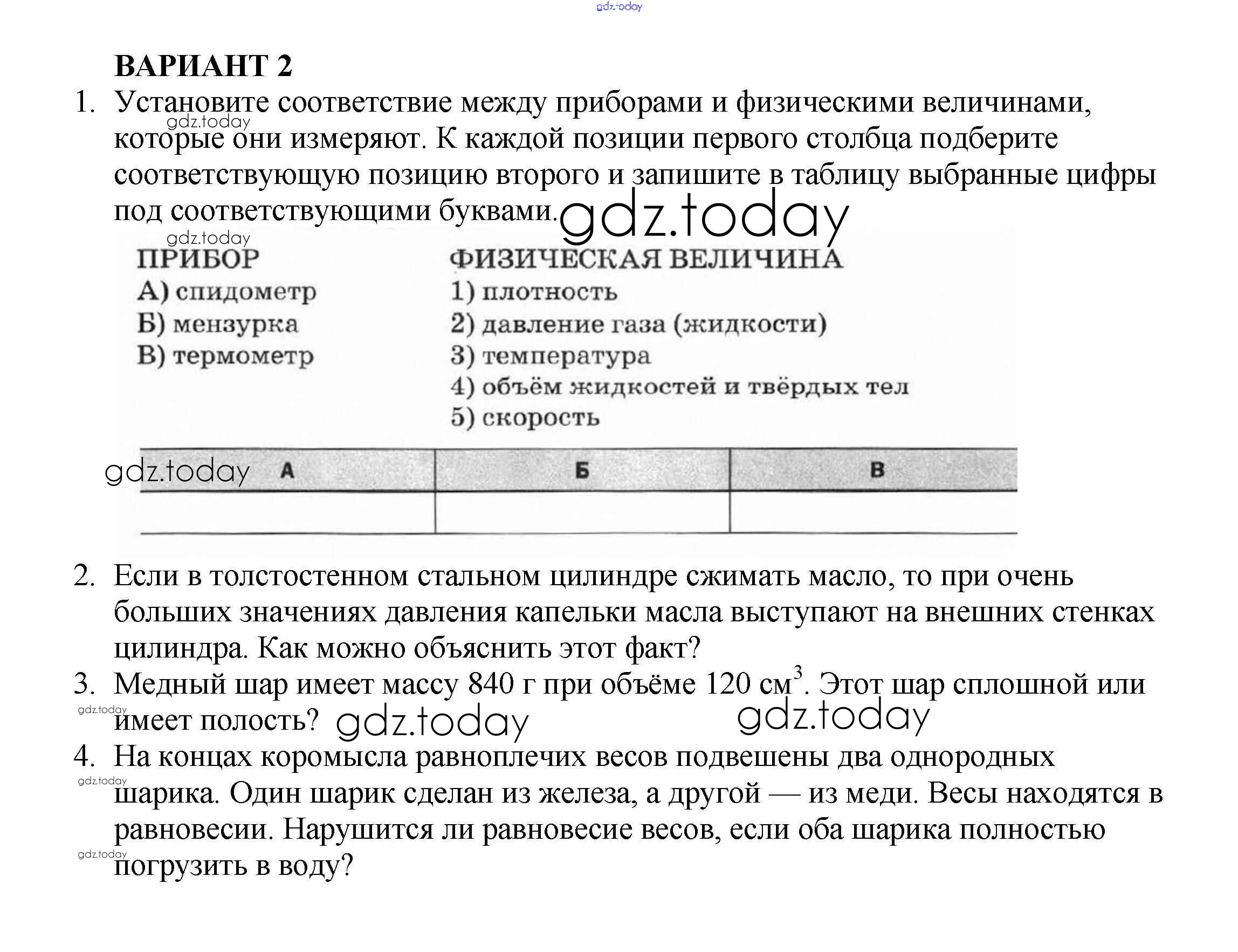 На страницах сайта gdz.today вы найдете учебный и вспомогательный материал, направленный на улучшения знаний школьной программы. ГДЗ - онлайн мир знаний КР №-5. Итоговая Решение к контрольным работам Вариант №2 Самостоятельным и контрольным работам по Физике для 7 класса Марон Дрофа Вертикаль 2016