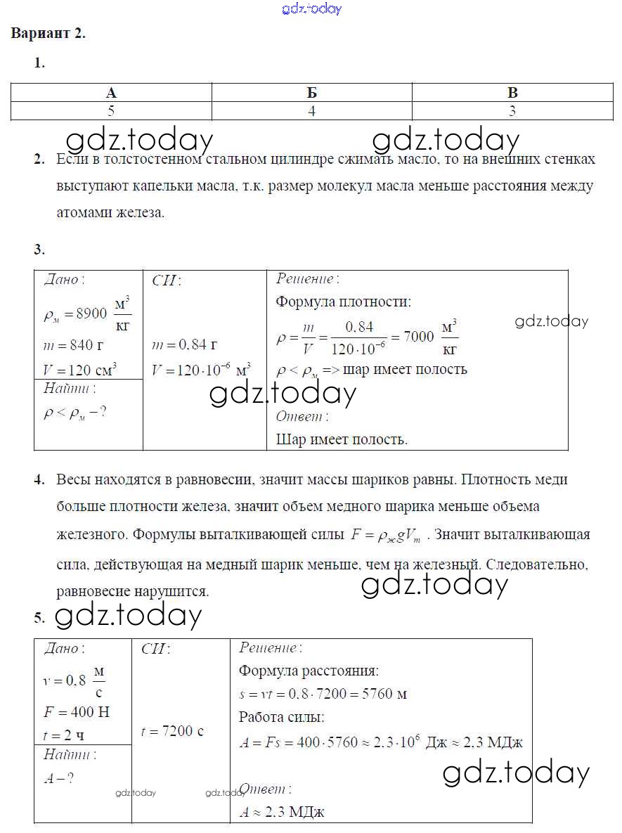 Ответы к КР №-5. Итоговая Решение к контрольным работам Вариант №2 Самостоятельным и контрольным работам по Физике для 7 класса Марон Дрофа Вертикаль 2016
