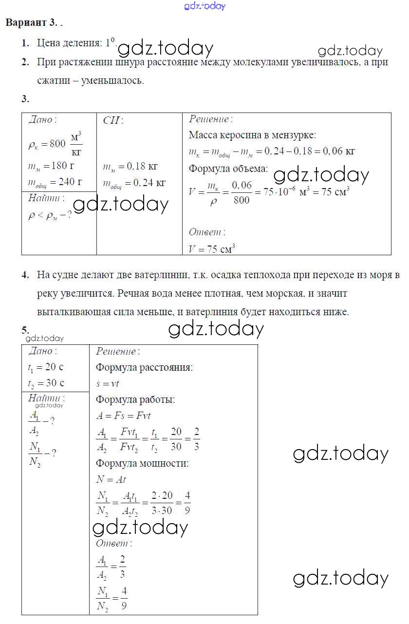 Ответы к КР №-5. Итоговая Решение к контрольным работам Вариант №3 Самостоятельным и контрольным работам по Физике для 7 класса Марон Дрофа Вертикаль 2016