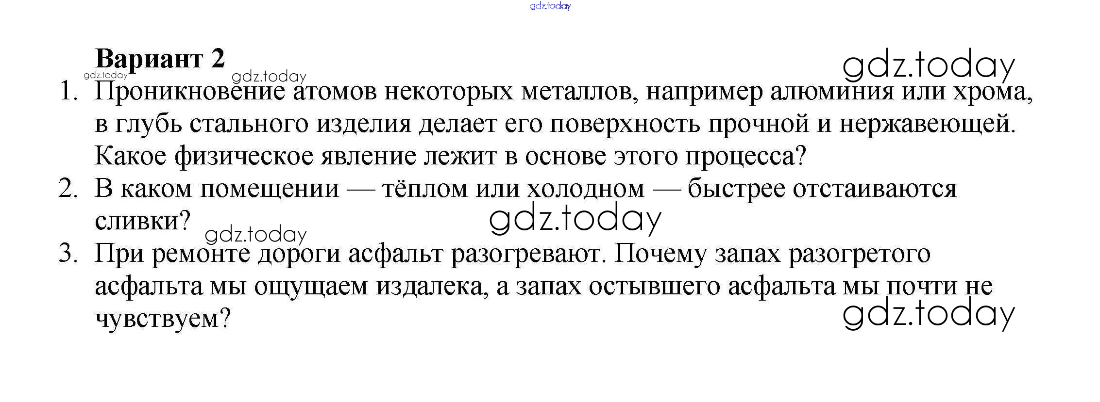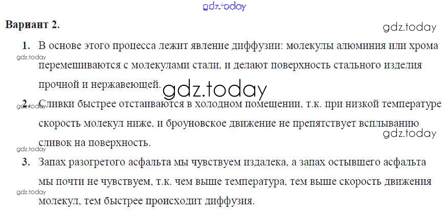 На страницах сайта gdz.today вы найдете учебный и вспомогательный материал, направленный на улучшения знаний школьной программы. ГДЗ - онлайн мир знаний СР-№10. Диффузия в газах, жидкостях и твердых телах Решение к самостоятельным работам Вариант №2 Самостоятельным и контрольным работам по Физике для 7 класса Марон Дрофа Вертикаль 2016