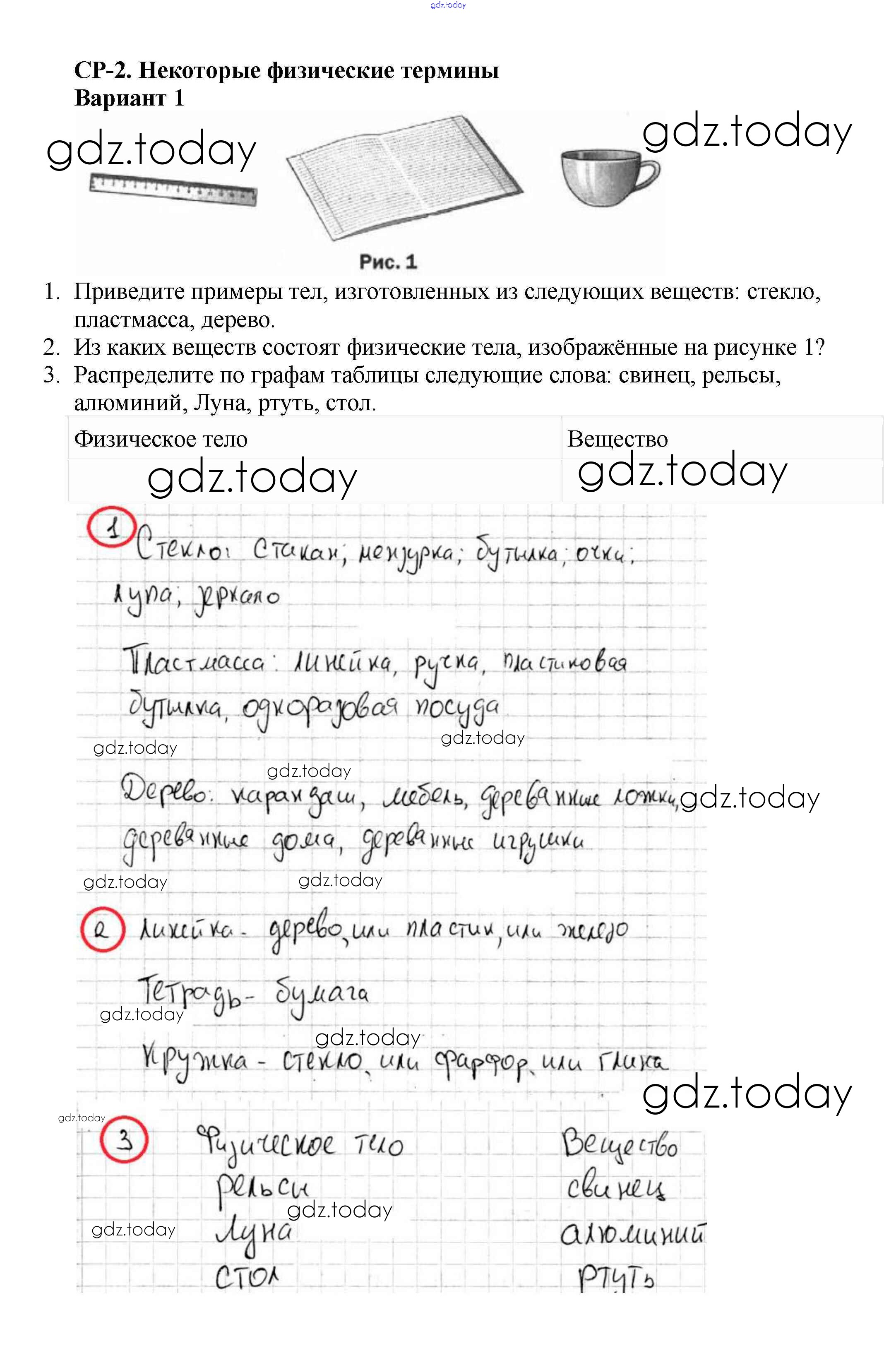 На страницах сайта gdz.today вы найдете учебный и вспомогательный материал, направленный на улучшения знаний школьной программы. ГДЗ - онлайн мир знаний СР-№2. Некоторые физические термины Решение к самостоятельным работам Вариант №1 Самостоятельным и контрольным работам по Физике для 7 класса Марон Дрофа Вертикаль 2016