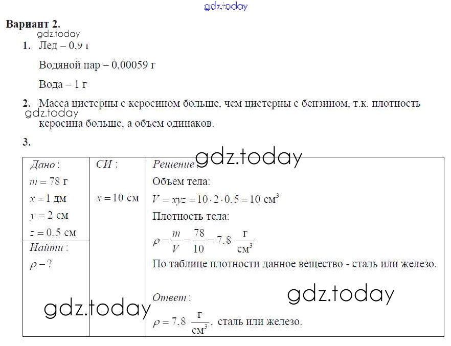 На страницах сайта gdz.today вы найдете учебный и вспомогательный материал, направленный на улучшения знаний школьной программы. ГДЗ - онлайн мир знаний СР-№22. Плотность вещества Решение к самостоятельным работам Вариант №2 Самостоятельным и контрольным работам по Физике для 7 класса Марон Дрофа Вертикаль 2016