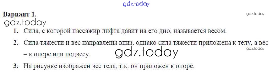 На страницах сайта gdz.today вы найдете учебный и вспомогательный материал, направленный на улучшения знаний школьной программы. ГДЗ - онлайн мир знаний СР-№27. Вес тела Решение к самостоятельным работам Вариант №1 Самостоятельным и контрольным работам по Физике для 7 класса Марон Дрофа Вертикаль 2016