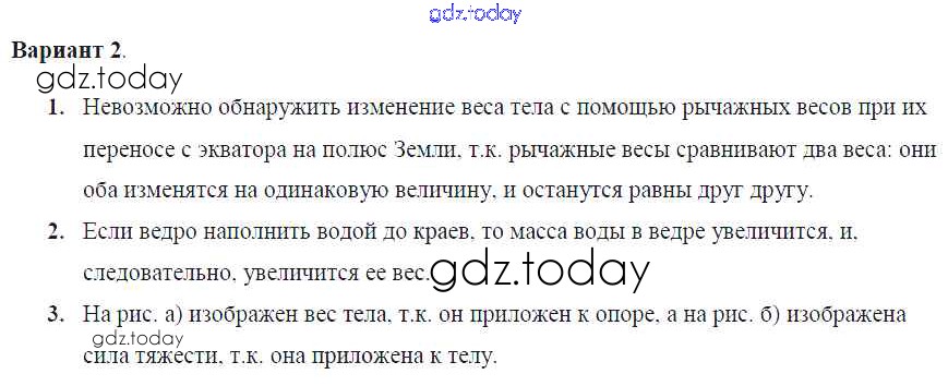 На страницах сайта gdz.today вы найдете учебный и вспомогательный материал, направленный на улучшения знаний школьной программы. ГДЗ - онлайн мир знаний СР-№27. Вес тела Решение к самостоятельным работам Вариант №2 Самостоятельным и контрольным работам по Физике для 7 класса Марон Дрофа Вертикаль 2016
