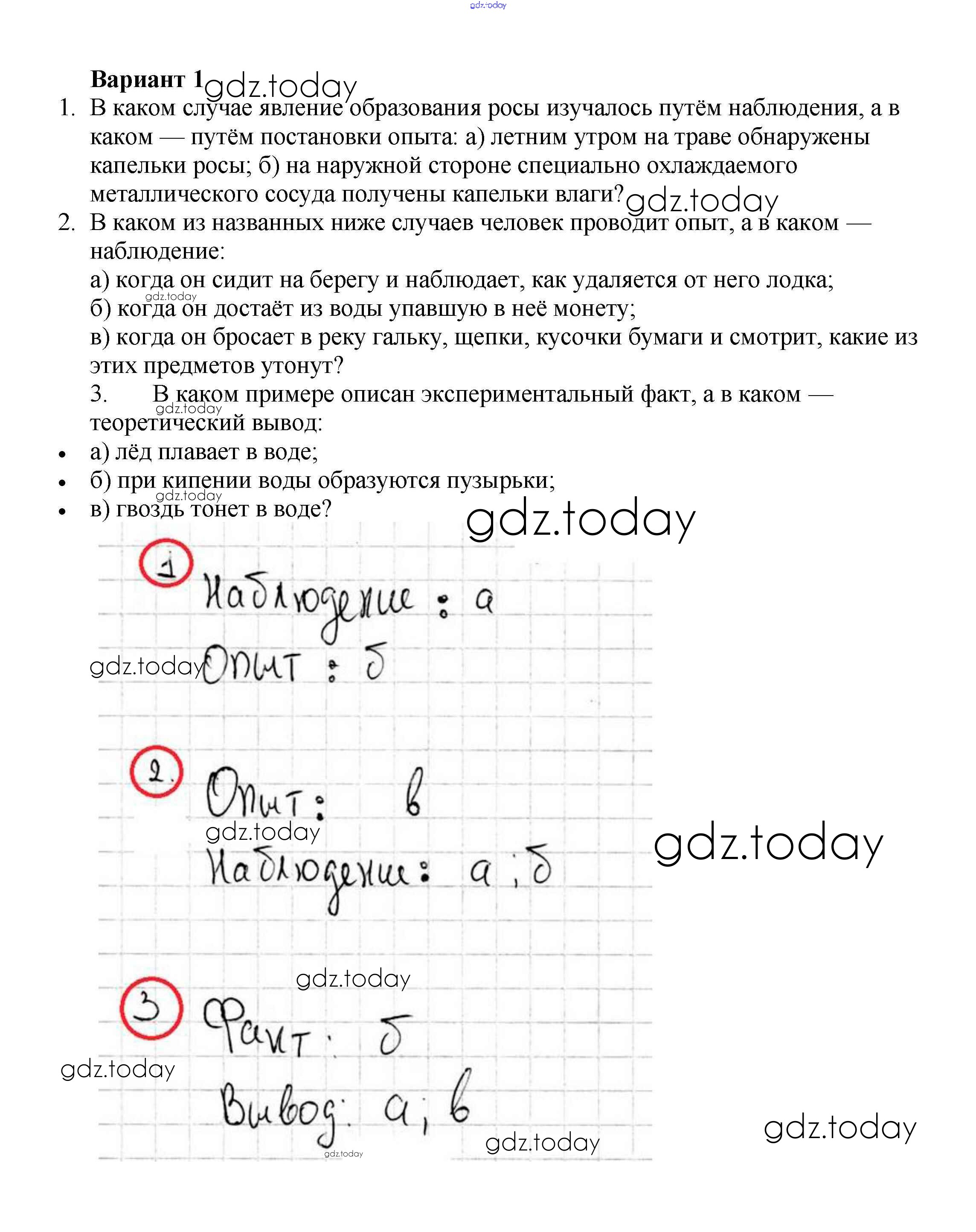 На страницах сайта gdz.today вы найдете учебный и вспомогательный материал, направленный на улучшения знаний школьной программы. ГДЗ - онлайн мир знаний СР-№3. Наблюдения и опыты Решение к самостоятельным работам Вариант №1 Самостоятельным и контрольным работам по Физике для 7 класса Марон Дрофа Вертикаль 2016