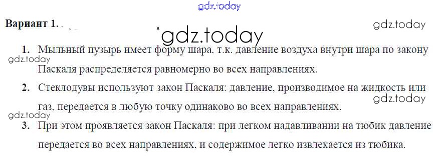 На страницах сайта gdz.today вы найдете учебный и вспомогательный материал, направленный на улучшения знаний школьной программы. ГДЗ - онлайн мир знаний СР-№38. Передача давления жидкостями и газами. Закон Паскаля Решение к самостоятельным работам Вариант №1 Самостоятельным и контрольным работам по Физике для 7 класса Марон Дрофа Вертикаль 2016