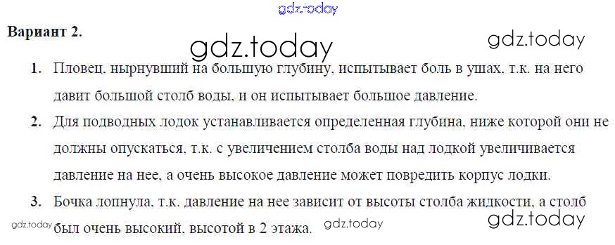 На страницах сайта gdz.today вы найдете учебный и вспомогательный материал, направленный на улучшения знаний школьной программы. ГДЗ - онлайн мир знаний СР-№39. Давление в жидкости и газе Решение к самостоятельным работам Вариант №2 Самостоятельным и контрольным работам по Физике для 7 класса Марон Дрофа Вертикаль 2016