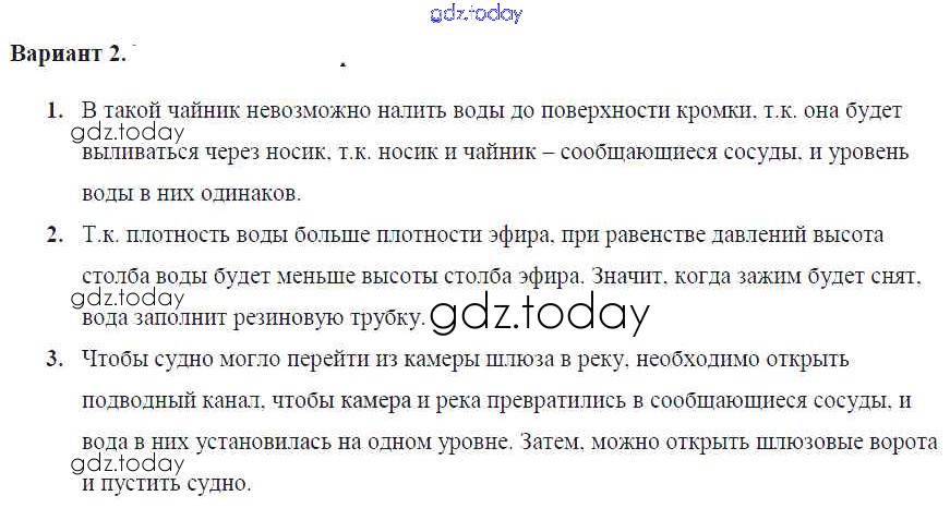 На страницах сайта gdz.today вы найдете учебный и вспомогательный материал, направленный на улучшения знаний школьной программы. ГДЗ - онлайн мир знаний СР-№41. Сообщающиеся сосуды Решение к самостоятельным работам Вариант №2 Самостоятельным и контрольным работам по Физике для 7 класса Марон Дрофа Вертикаль 2016