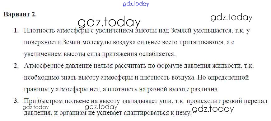Ответы к СР-№43. Почему существует воздушная оболочка Земли Решение к самостоятельным работам Вариант №2 Самостоятельным и контрольным работам по Физике для 7 класса Марон Дрофа Вертикаль 2016