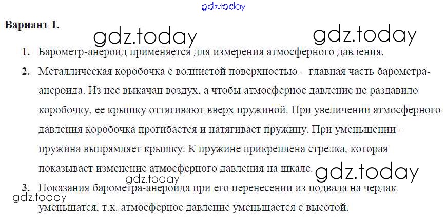На страницах сайта gdz.today вы найдете учебный и вспомогательный материал, направленный на улучшения знаний школьной программы. ГДЗ - онлайн мир знаний СР-№45. Барометр-анероид Решение к самостоятельным работам Вариант №1 Самостоятельным и контрольным работам по Физике для 7 класса Марон Дрофа Вертикаль 2016