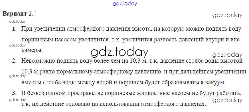 На страницах сайта gdz.today вы найдете учебный и вспомогательный материал, направленный на улучшения знаний школьной программы. ГДЗ - онлайн мир знаний СР-№48. Поршневой жидкостный насос Решение к самостоятельным работам Вариант №1 Самостоятельным и контрольным работам по Физике для 7 класса Марон Дрофа Вертикаль 2016