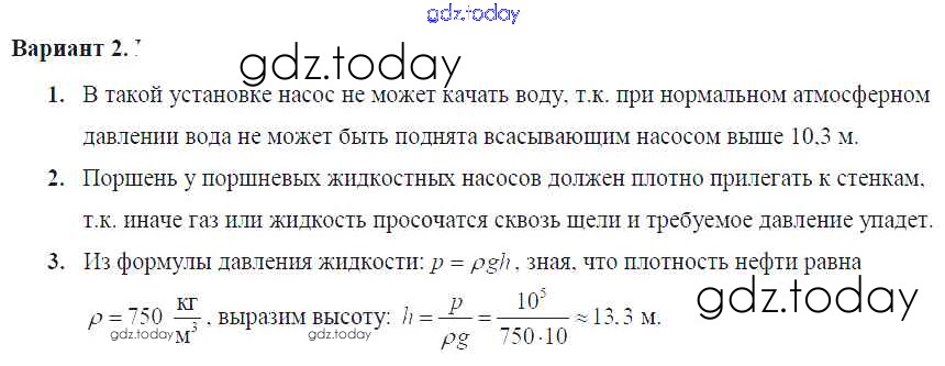 На страницах сайта gdz.today вы найдете учебный и вспомогательный материал, направленный на улучшения знаний школьной программы. ГДЗ - онлайн мир знаний СР-№48. Поршневой жидкостный насос Решение к самостоятельным работам Вариант №2 Самостоятельным и контрольным работам по Физике для 7 класса Марон Дрофа Вертикаль 2016